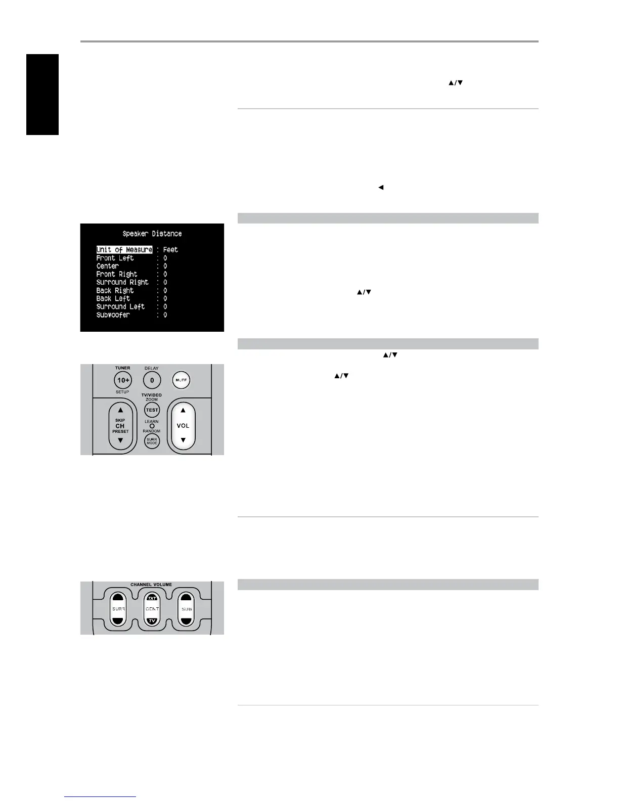 While at ‘Speaker Distance’ menu, use the keys to individually set Front Left, Center, Front Right,