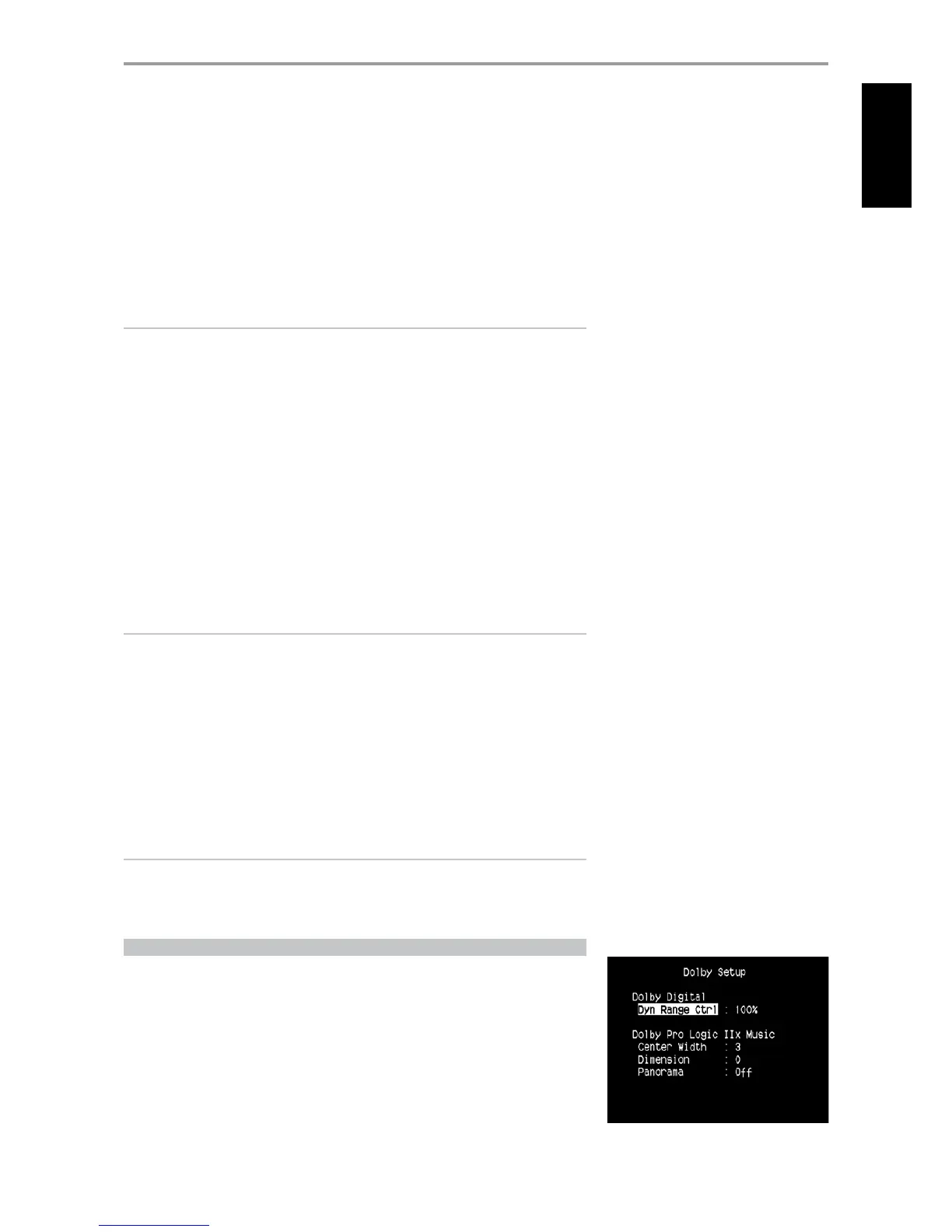 Under this menu, the Dolby Digital’s Dynamic Range Control can be adjusted as well as the settings for