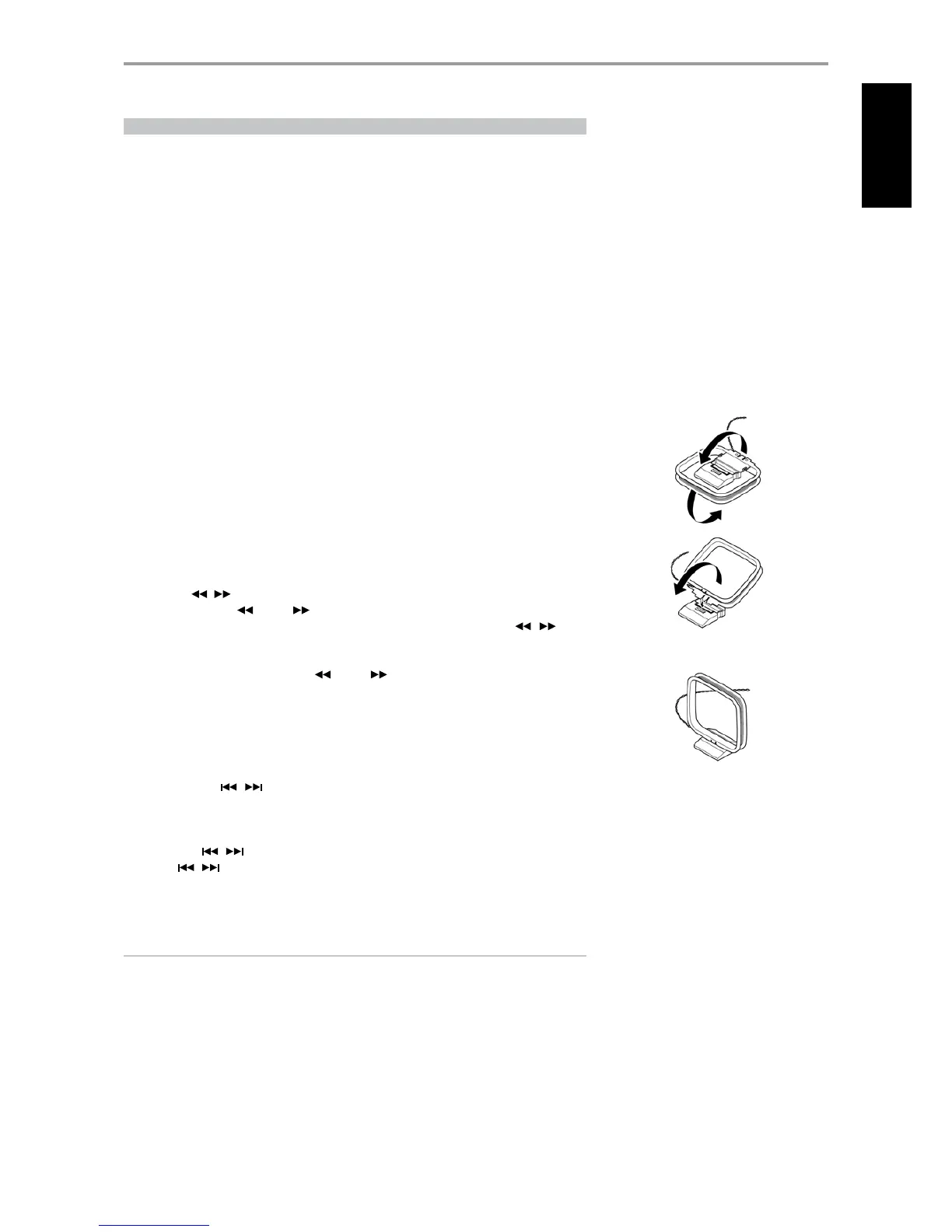 1 Press TUNE / on the front panel momentarily to step up or down between AM or FM frequencies.
