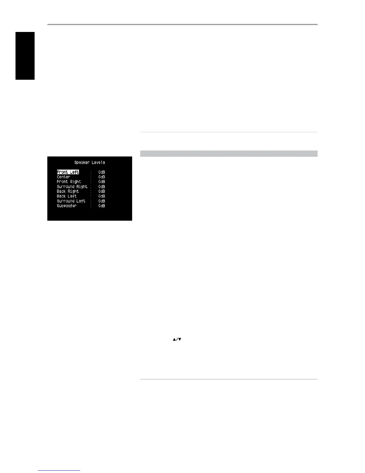 channel to the required level (it’s usually simplest to begin with the Front Left). As you cycle the test