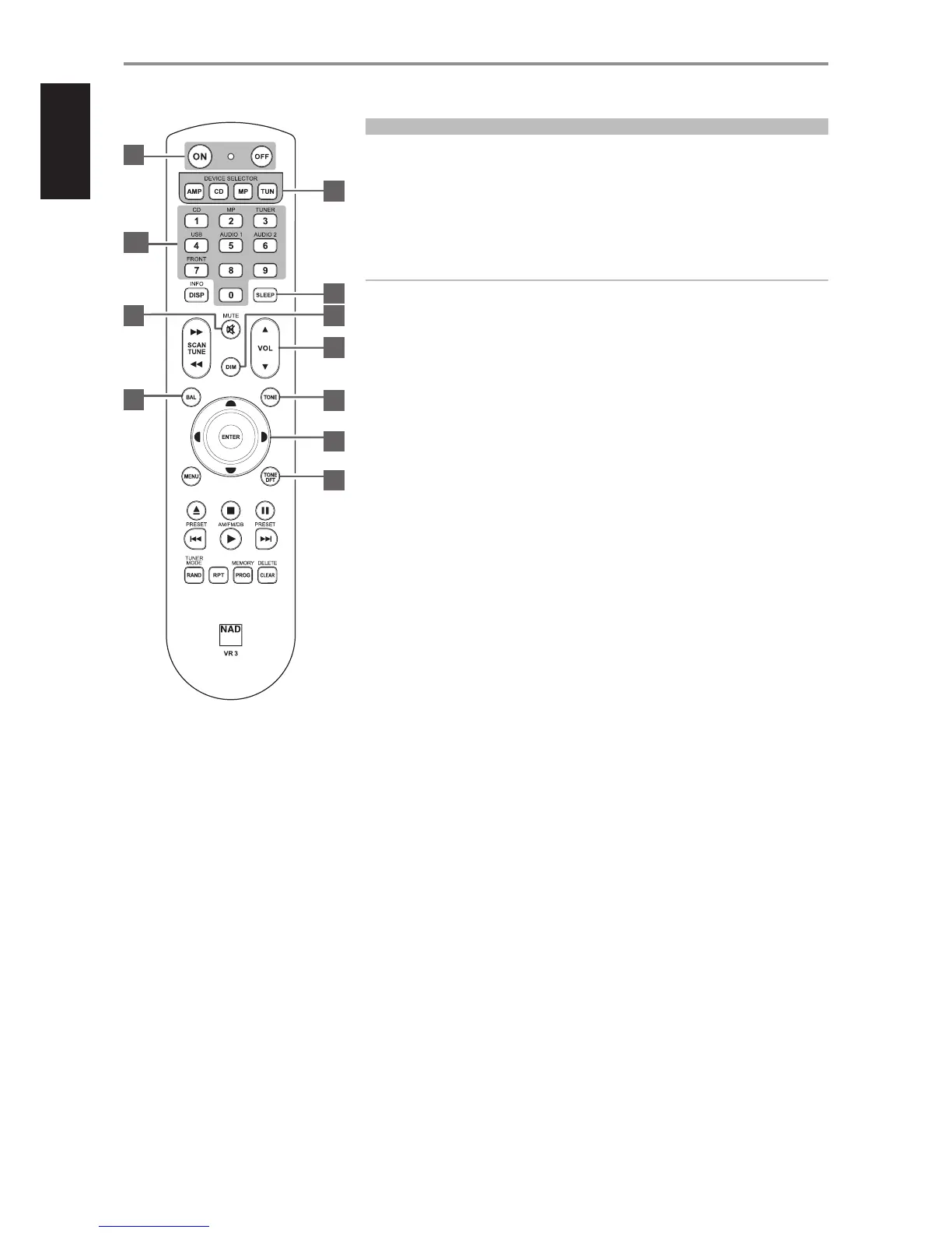 The remote control handset supplied with the VISO THREE is of a universal NAD type, designed to