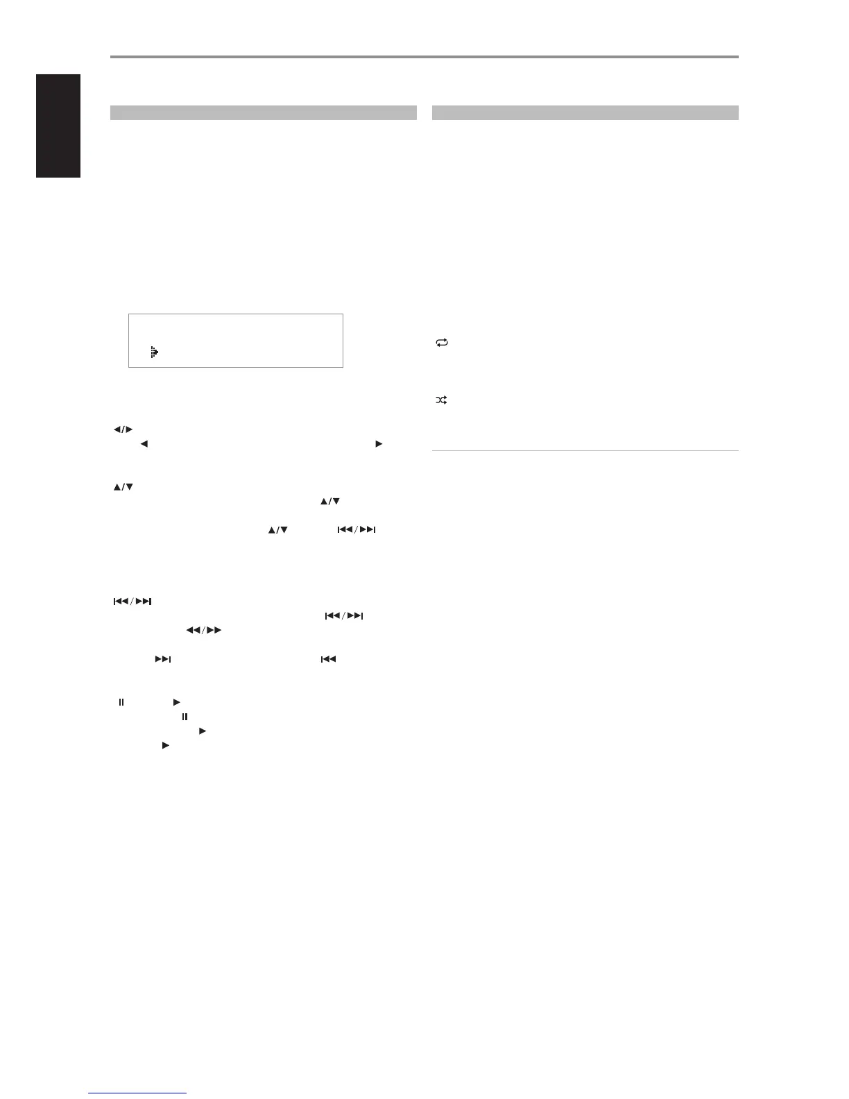• Press [ ] to skip forward to the next song or [ ] to skip back to