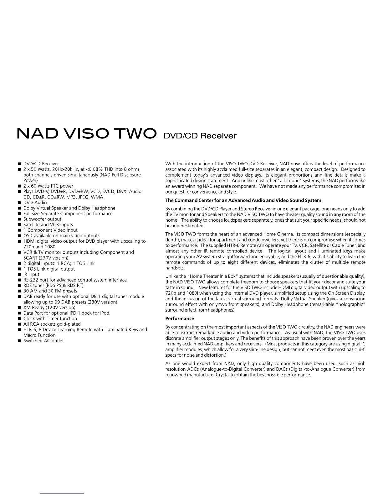 Other manuals for NAD VISO TWO