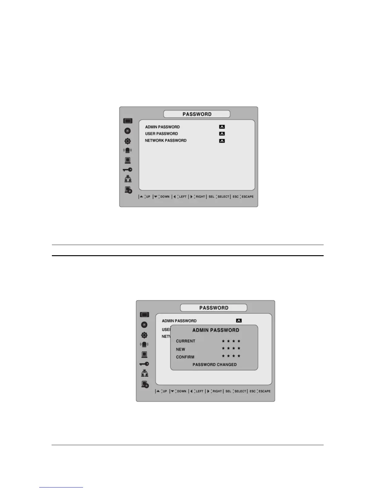 Use the LEFT or RIGHT and UP and DOWN arrow controls to set the password.