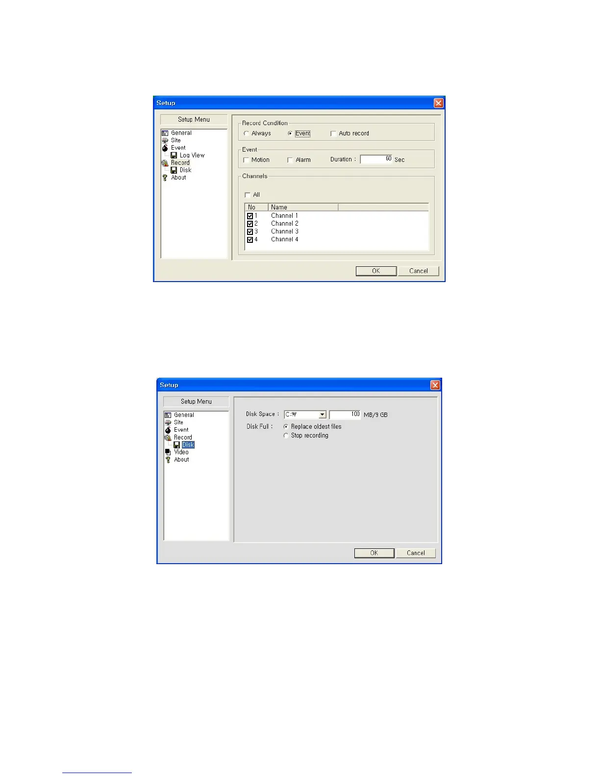 program to use for recording. You can also choose to overwrite data or stop recording when the