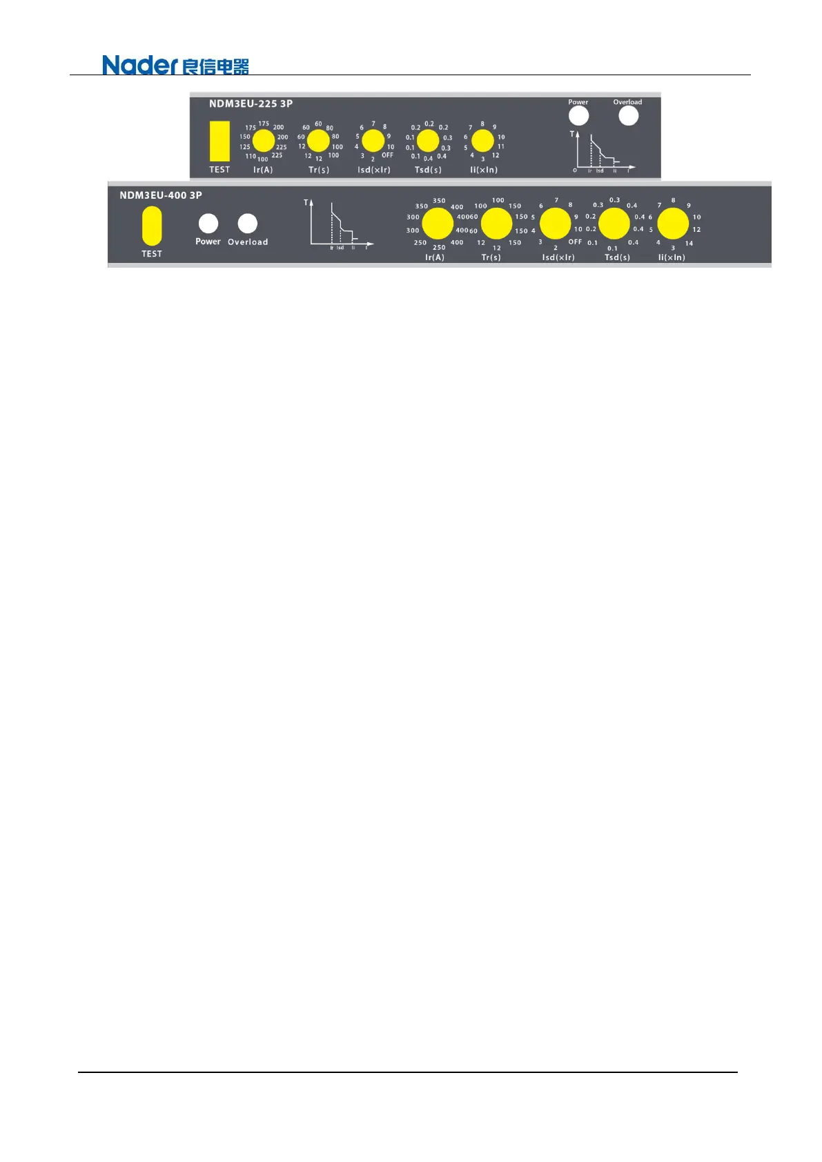 For example, when Ir is set to 400 and Tr is set to 12s, when the main circuit current is 2×400A, the circuit