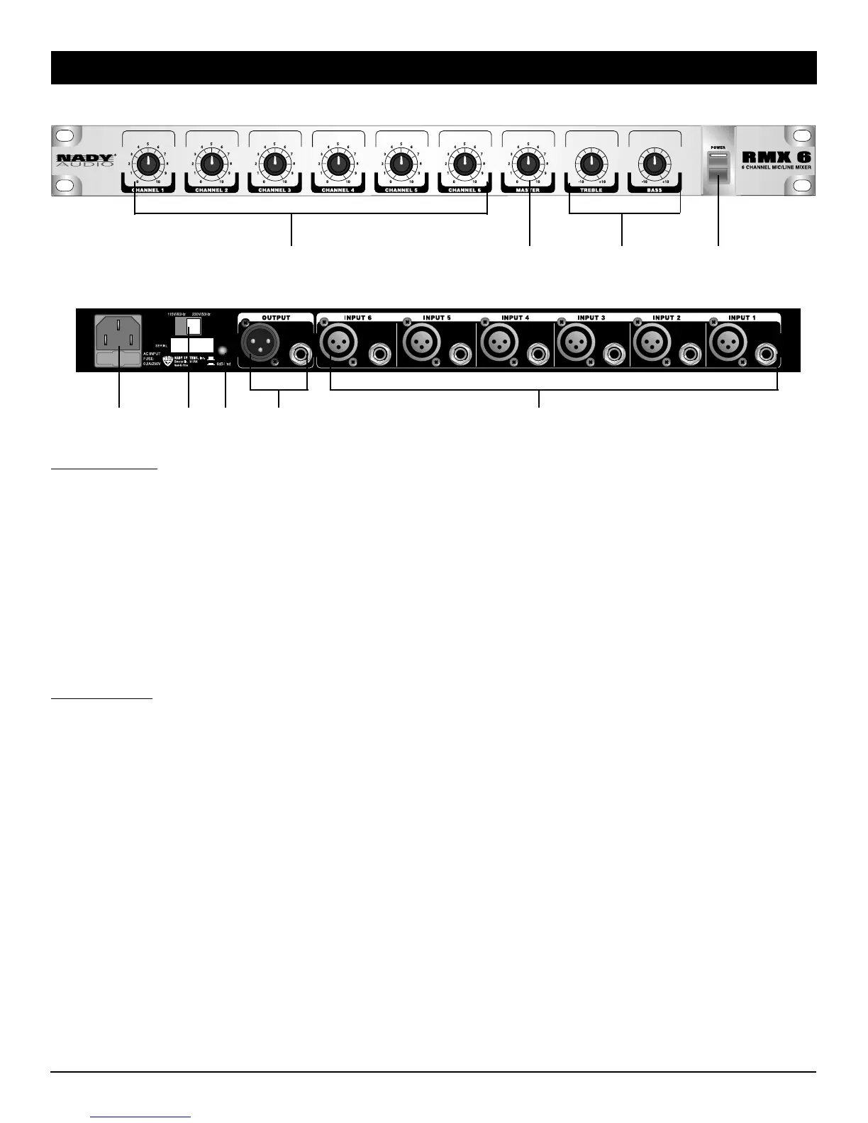 (Note: Channels 4, 5 and 6 provide +15V phantom power for