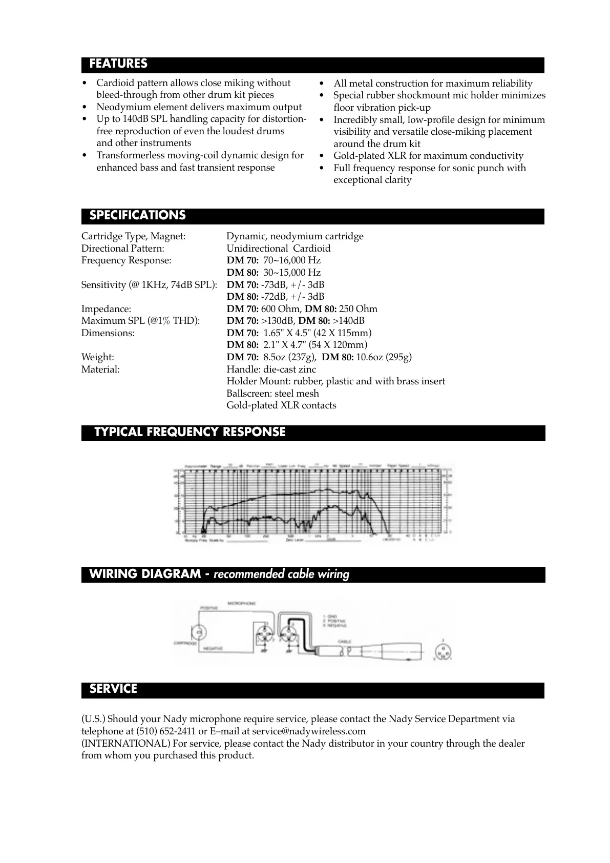 (U.S.) Should your Nady microphone require service, please contact the Nady Service Department via