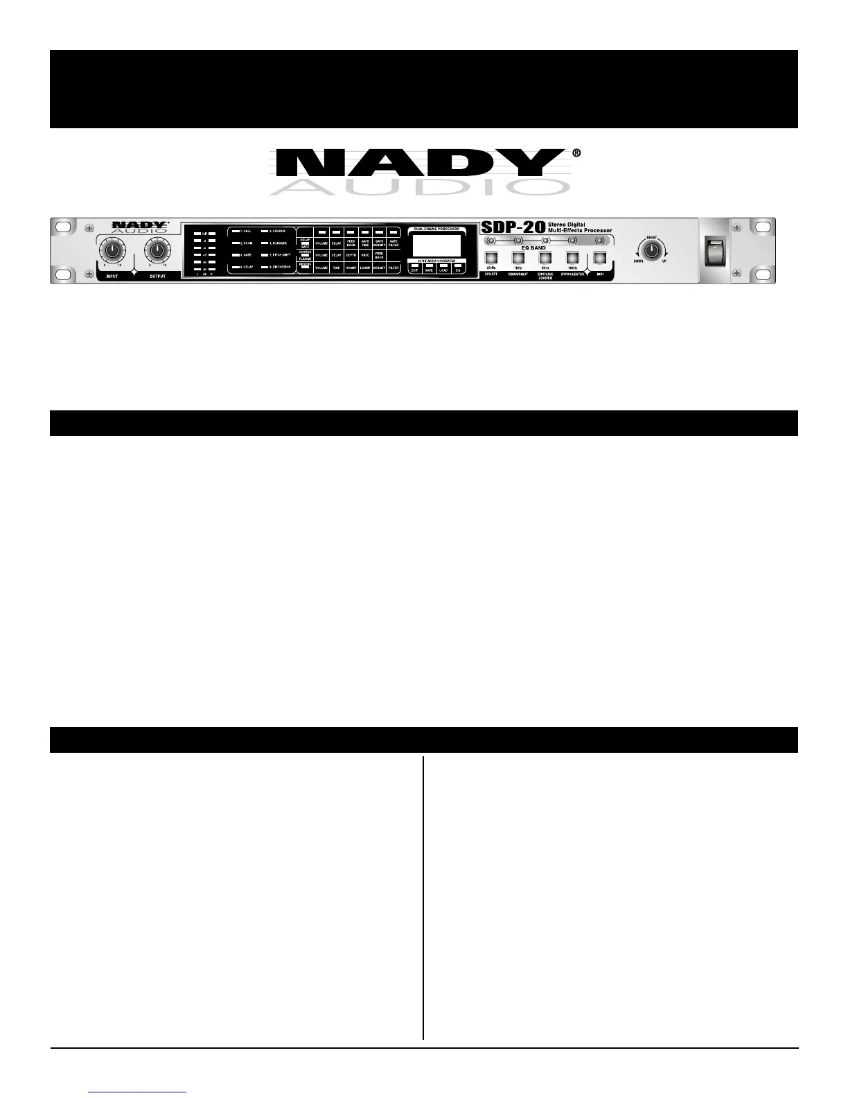 your new NADY AUDIO SDP-20 has superior performance and greater flexibility than any other Digital Effects Processors in its price
