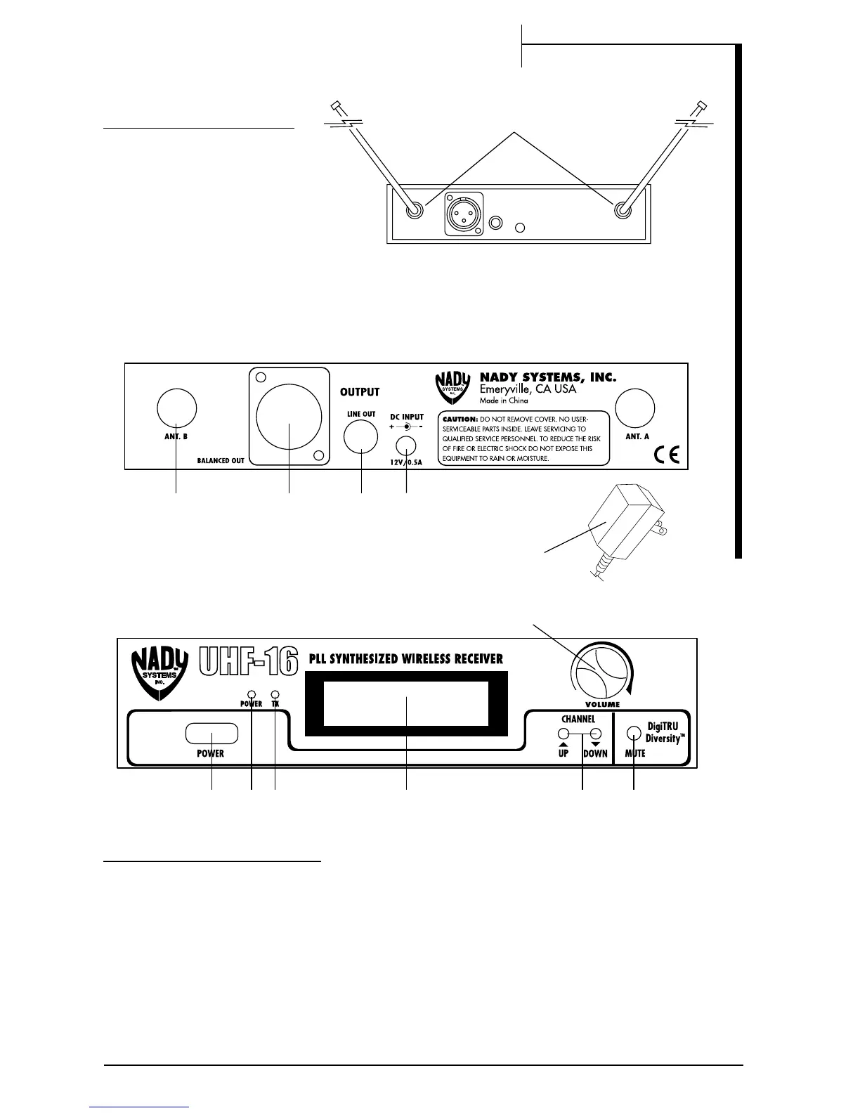 The POWER ON LED (9) will now light, and the receiver is operational.