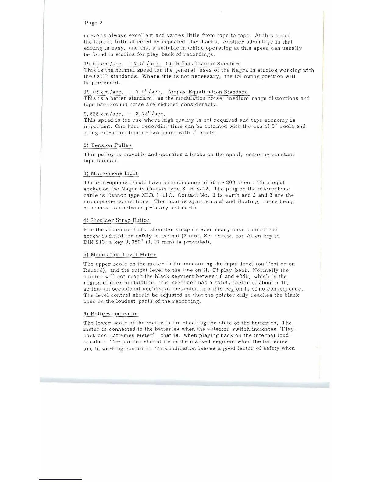 Nagra III - Tension Pulley and Tape Path; Microphone Input and Level Meter