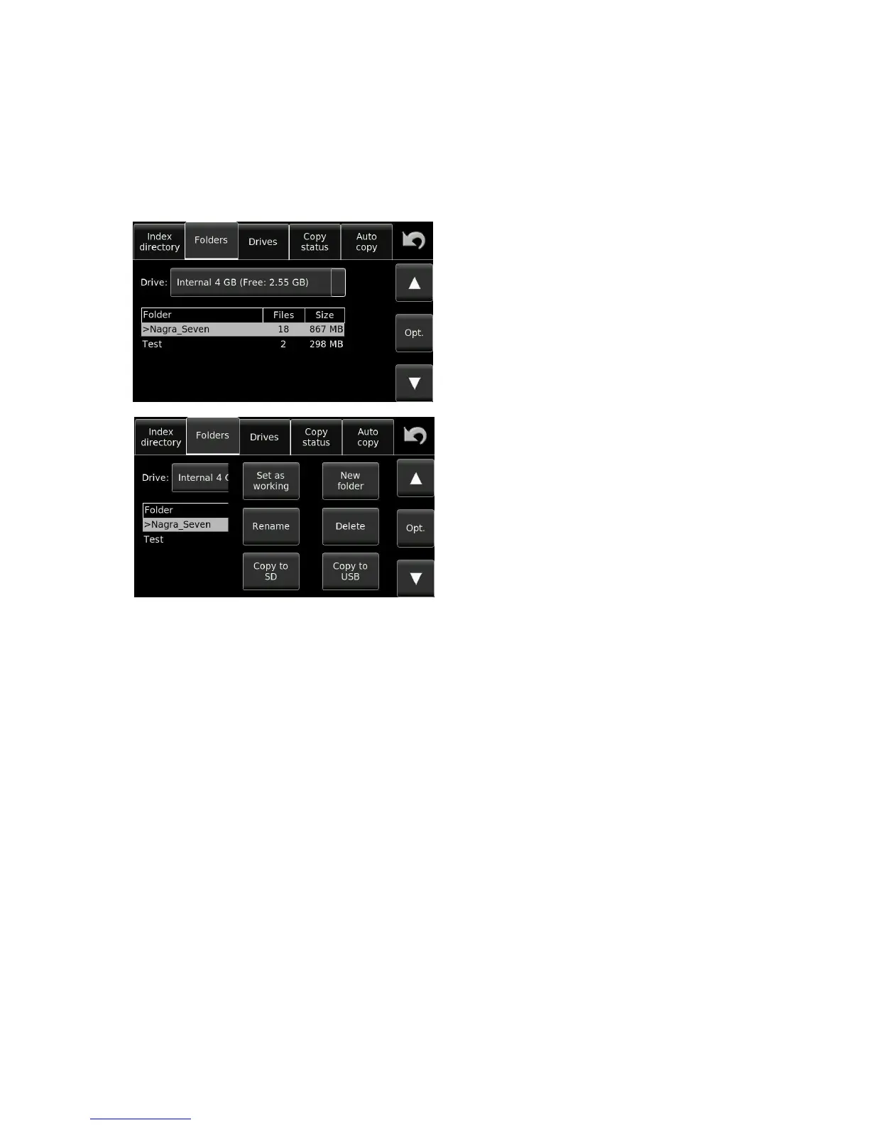 Set working: Select the currently highlighted folder as the working folder where recordings are to be