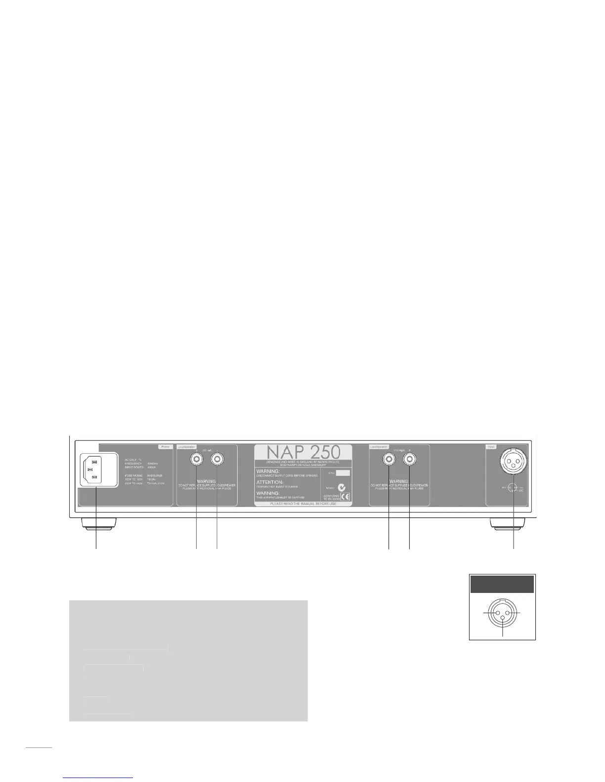 turned down, before switching on the NAP 250. The NAP 250 power button is located on