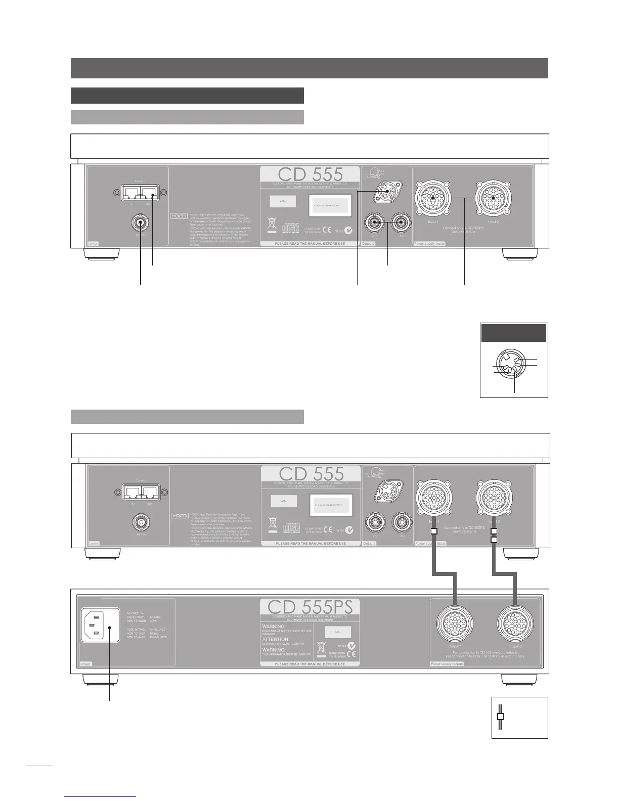 the CD 555 to the CD 555PS. Cable 1, identified by a