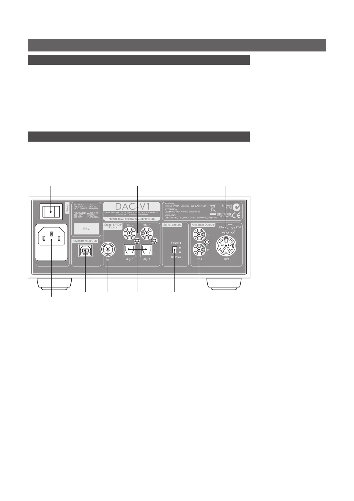 • DAC-V1의 뒷면에 기재되어 있는 전원 규격이 사용 지역에 맞는지 확인하십시오. DAC-V1을 동봉된