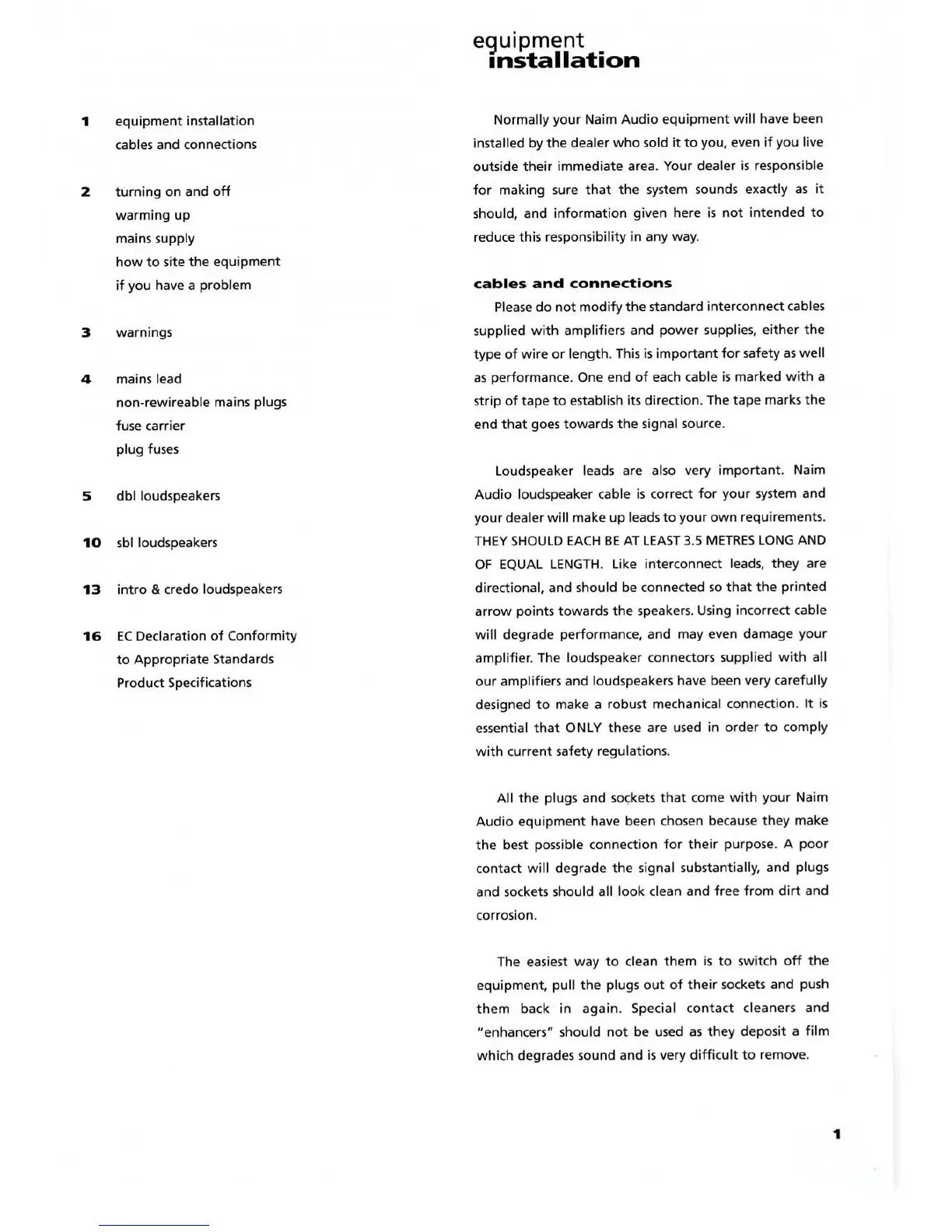 NAIM dbl - equipment installation and setup; cables and connections; turning on and off; warming up