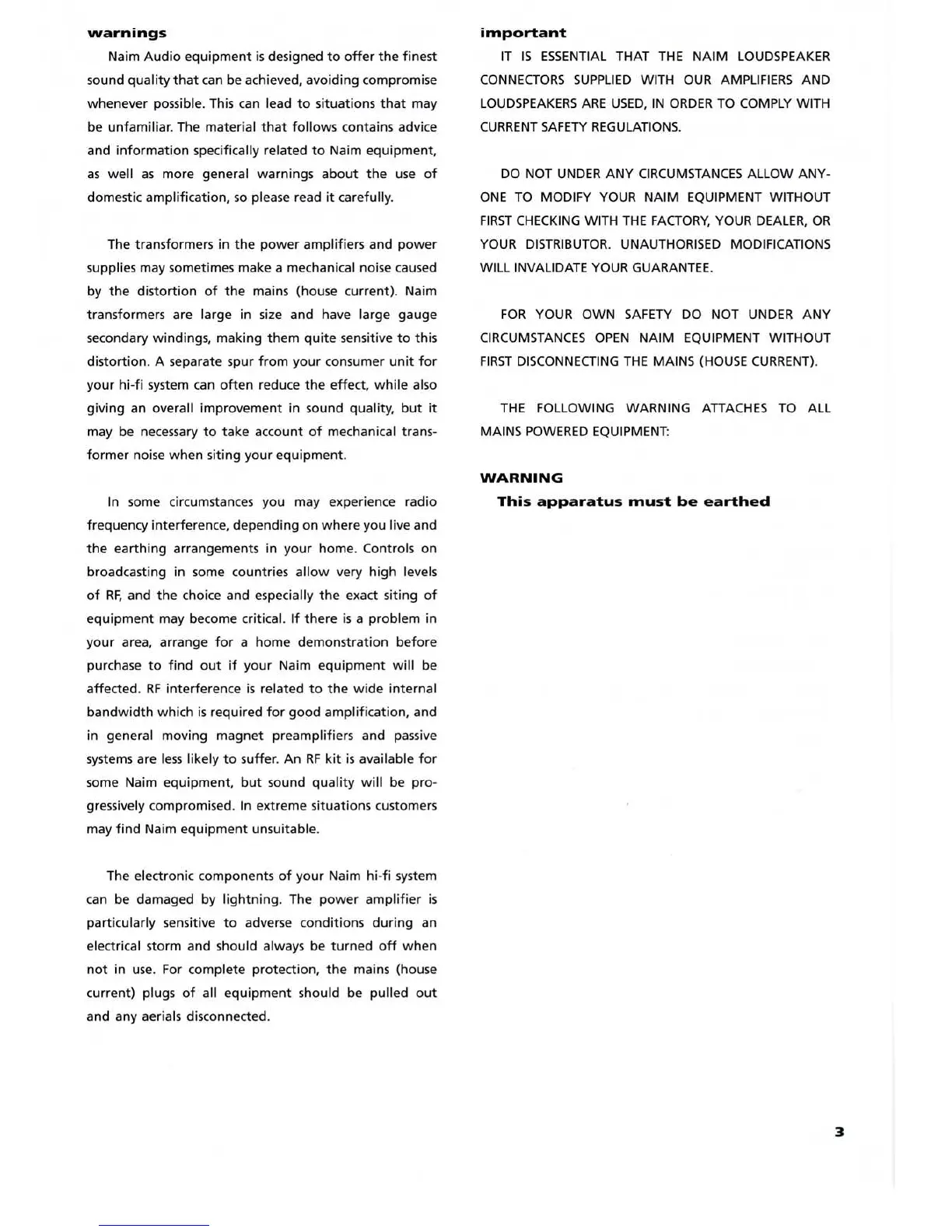 NAIM dbl - safety and warnings; important safety notices; earthing requirement