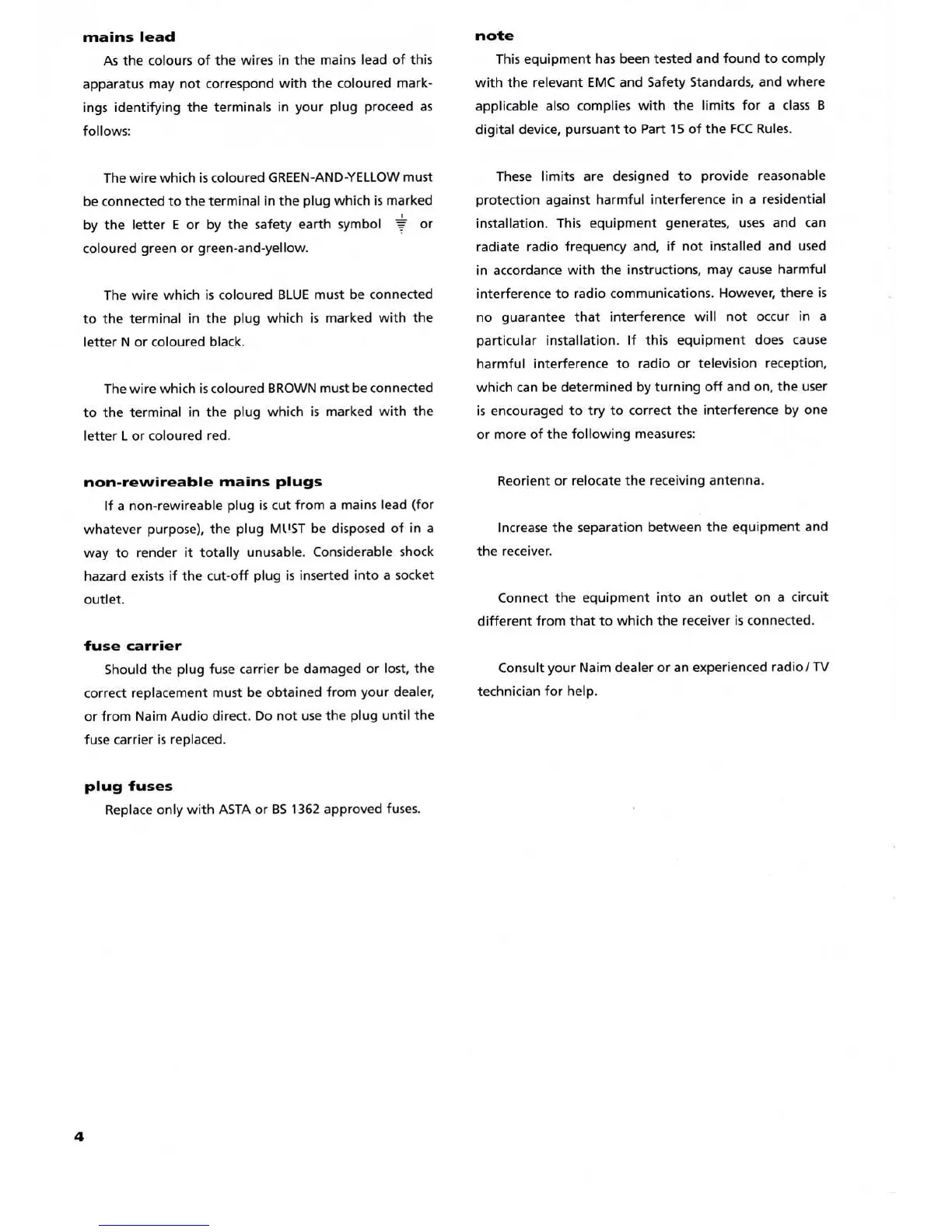 NAIM dbl - mains connection details; mains lead wiring; non-rewireable mains plugs; fuse carrier and plug fuses
