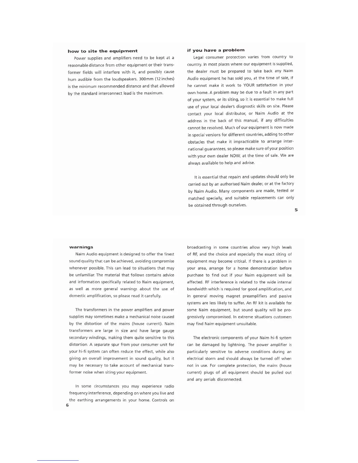 NAIM HEADLINE - System Siting and Troubleshooting; How to Site the Equipment; If You Have a Problem; Safety and Warnings