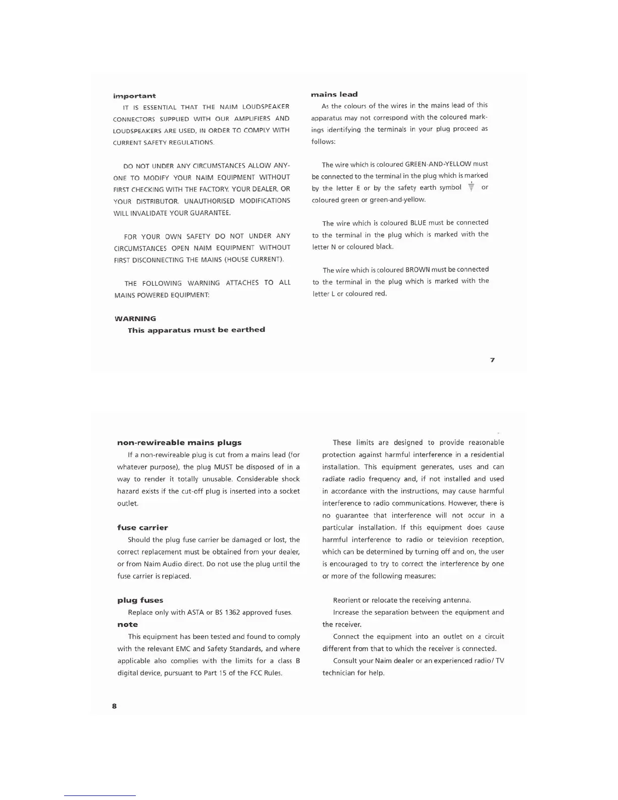 NAIM HEADLINE - Mains Lead and Plug Safety; Mains Lead; Non-Rewireable Mains Plugs; Fuse Carrier and Plug Fuses
