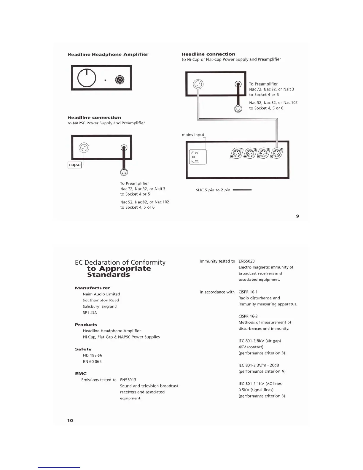 NAIM HEADLINE - Connections and Compliance; Headline Connection; EC Declaration of Conformity