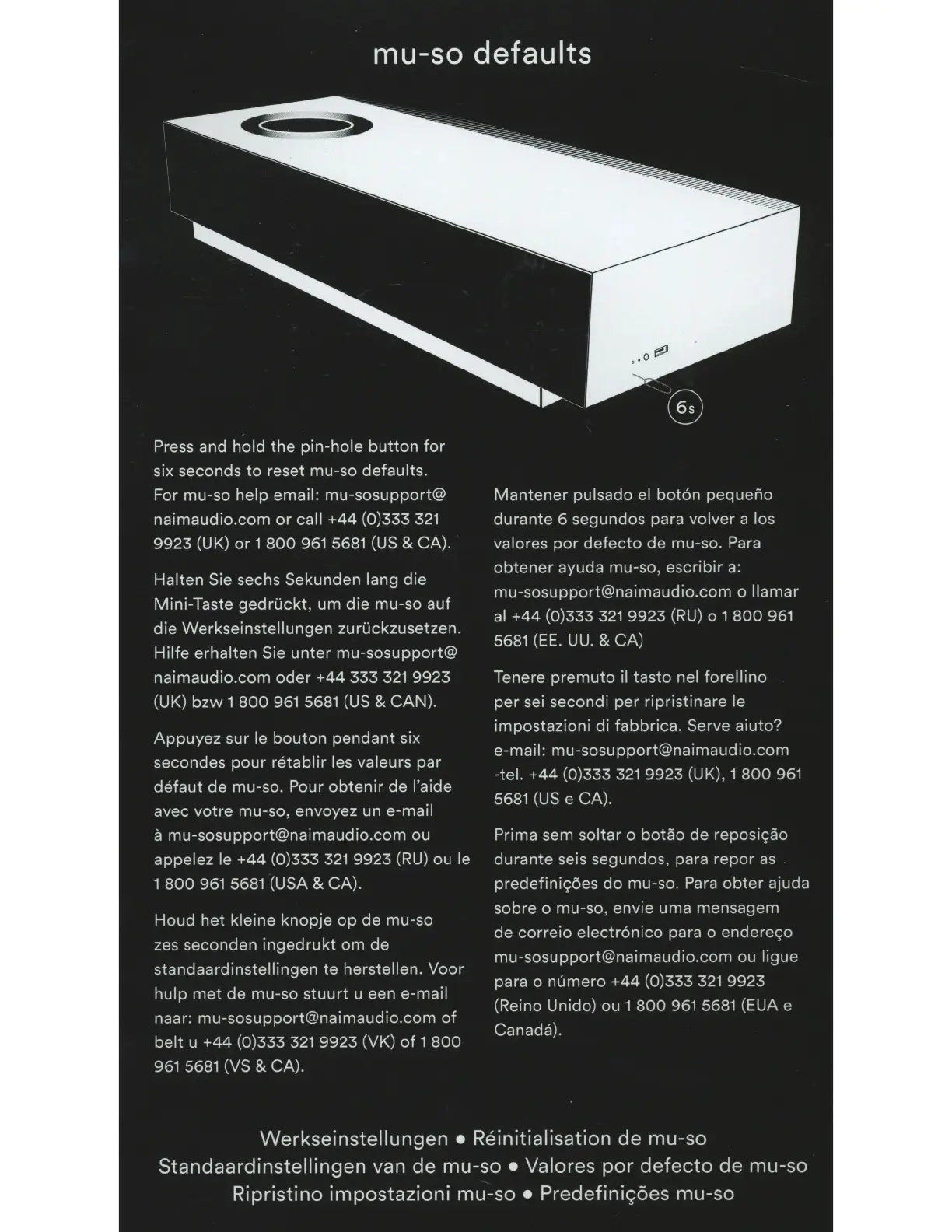 NAIM Mu-so - Resetting mu-so to Factory Defaults