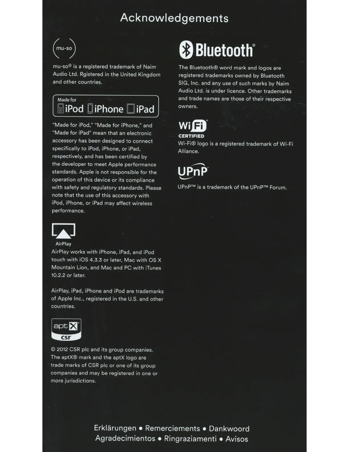 NAIM Mu-so - Acknowledgements