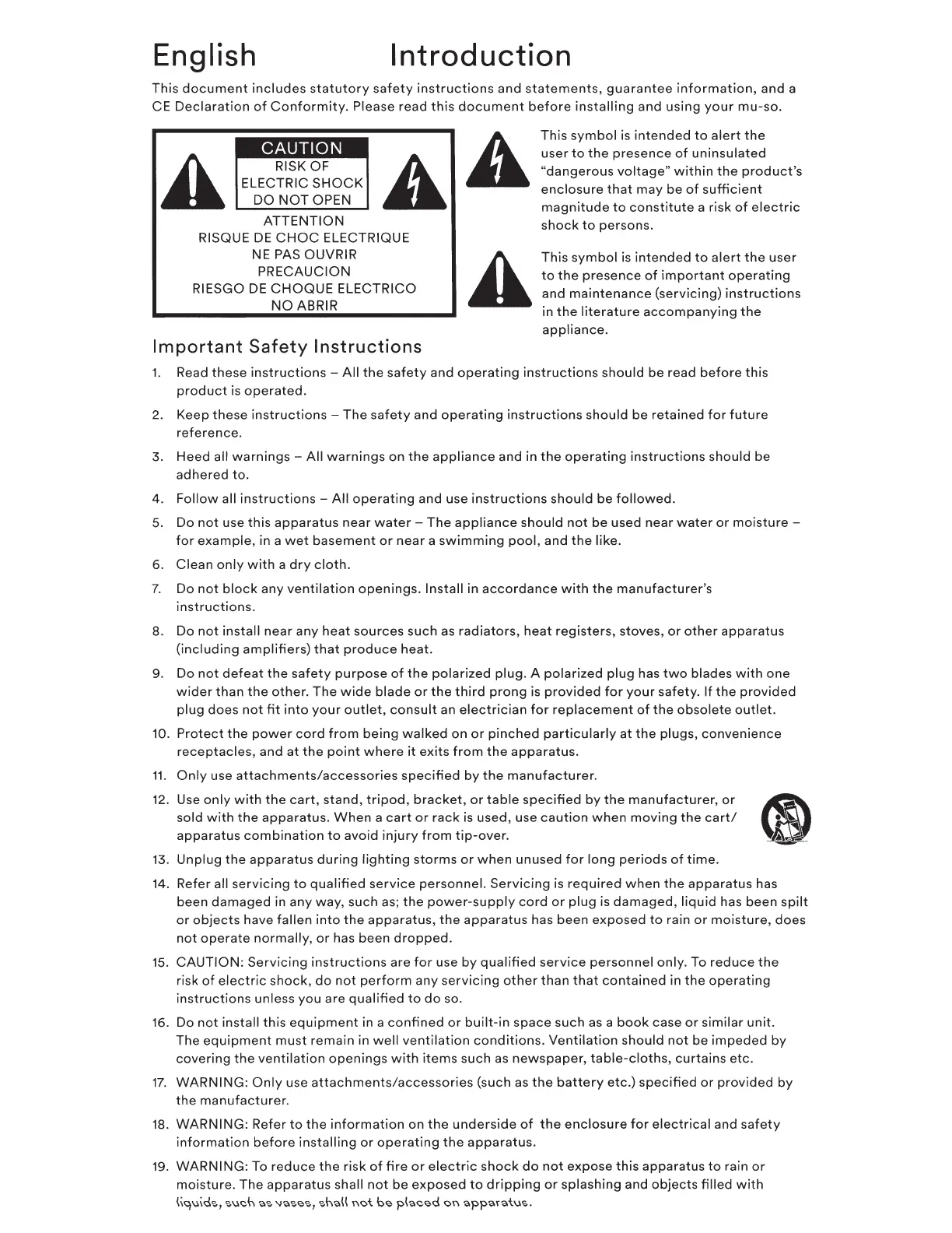 NAIM Mu-so - Introduction and Safety Overview; Important Safety Instructions