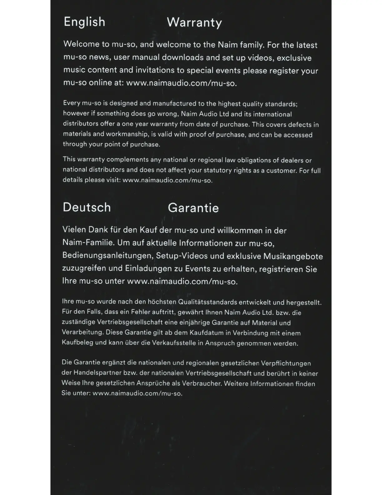 NAIM Mu-so - English Warranty Terms