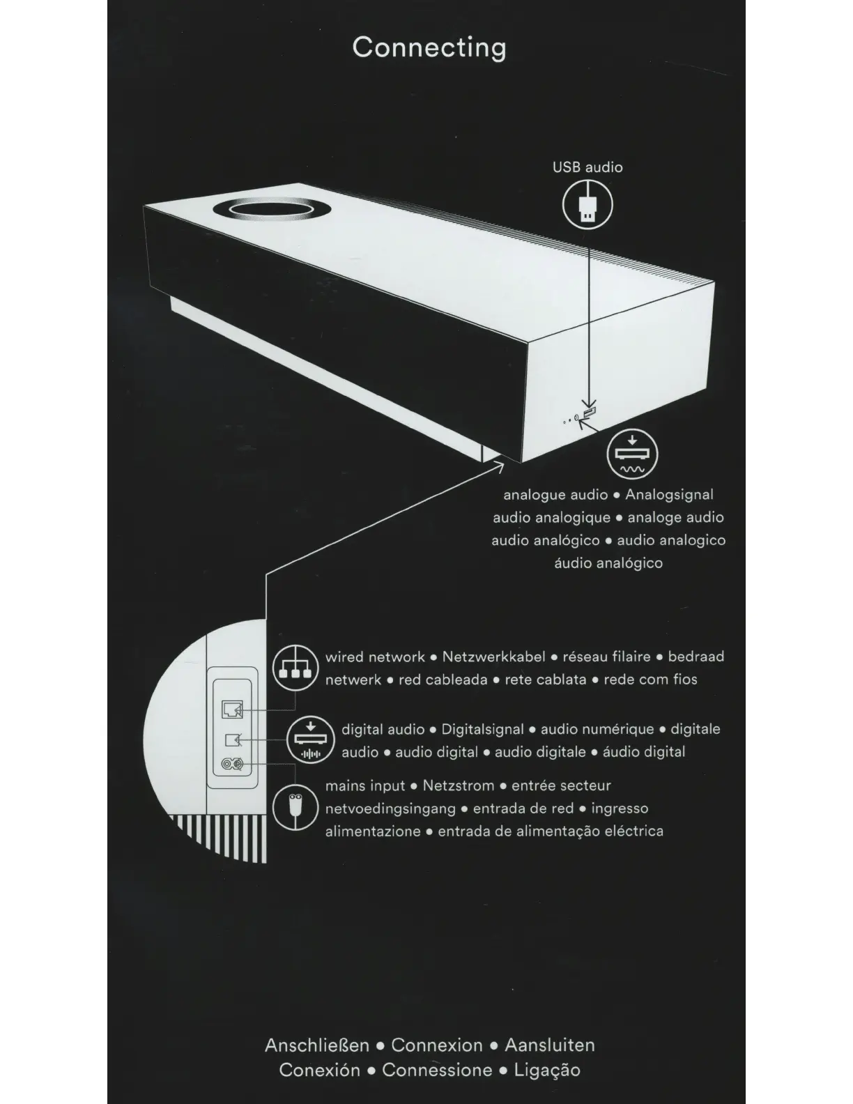 NAIM Mu-so - Connecting Your mu-so; Analogue, USB, and Digital Inputs; Wired Network Connection; Mains Power Connection