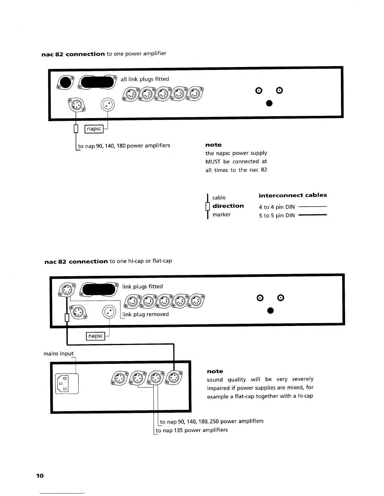 NAIM nac 52 - NAC 82 Power Amplifier Connections; Connection to Single Power Amplifier; Connection to Hi-Cap or Flat-Cap
