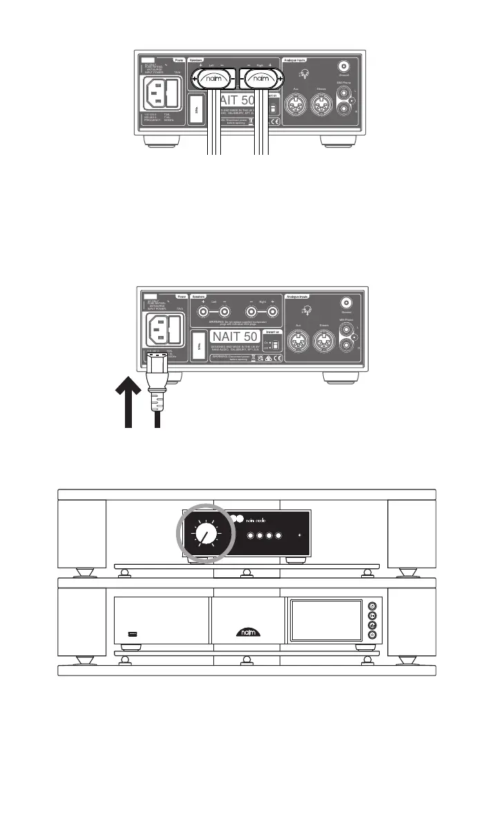 Collegare i cavi degli altoparlanti al NAIT 50, accertandosi che ciascun cavo sia