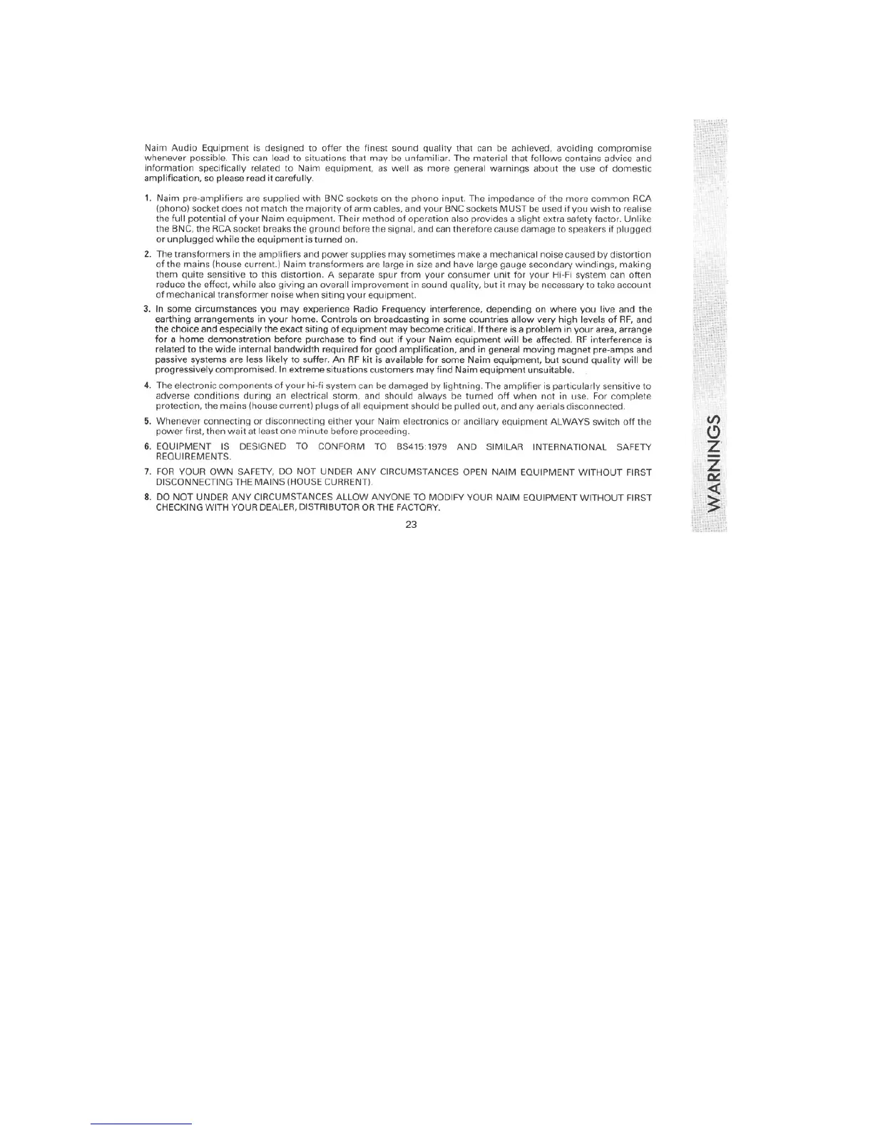 NAIM NAIT2 - Important Safety Warnings; Pre-amplifier Input and Safety; Mains Noise and Transformer Issues; Lightning and Electrical Storm Protection
