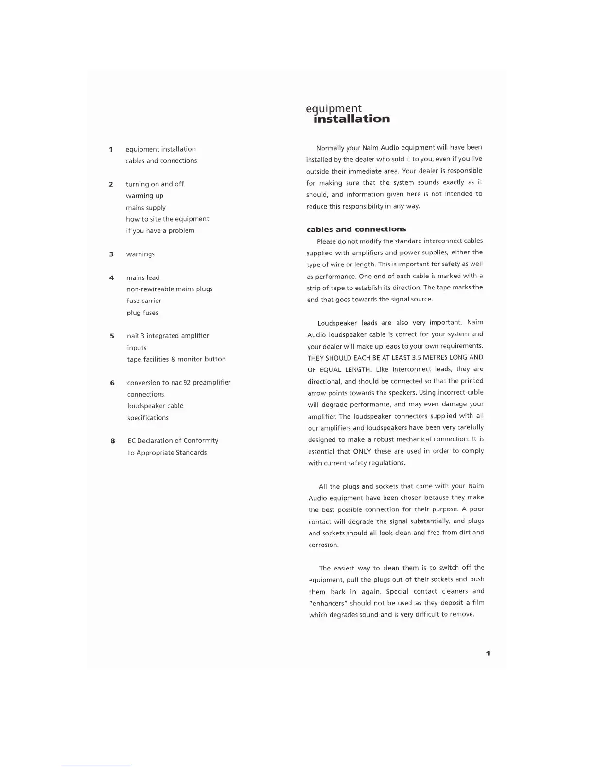 NAIM NAIT3 - Equipment Installation; Cables and Connections