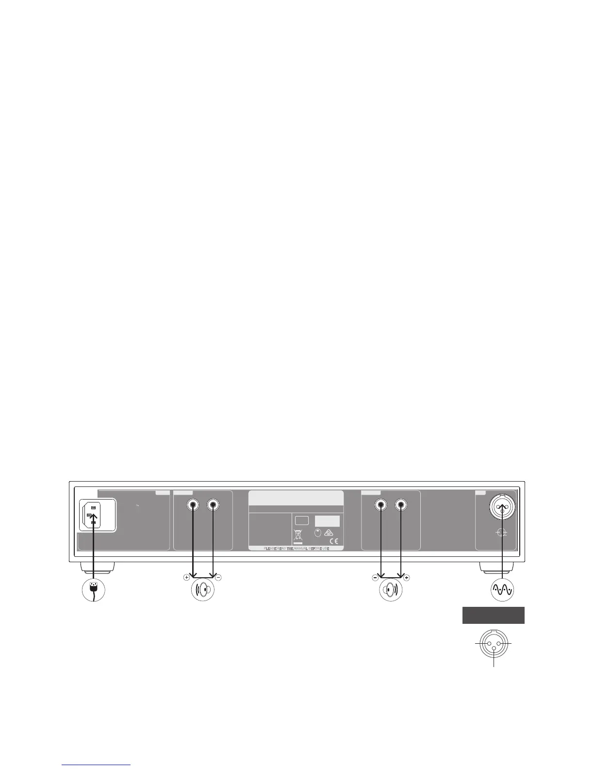 before connecting cables or switching on. Switch on the source and preamplier components, with the volume turned down,