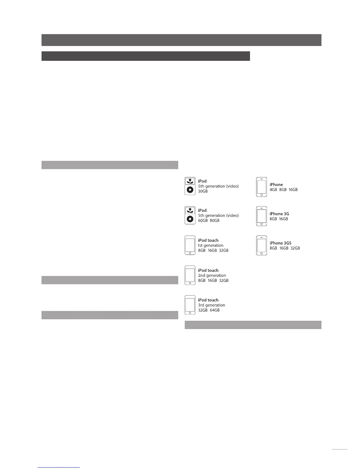 Apple iPod and iPhone models to be selected and played.