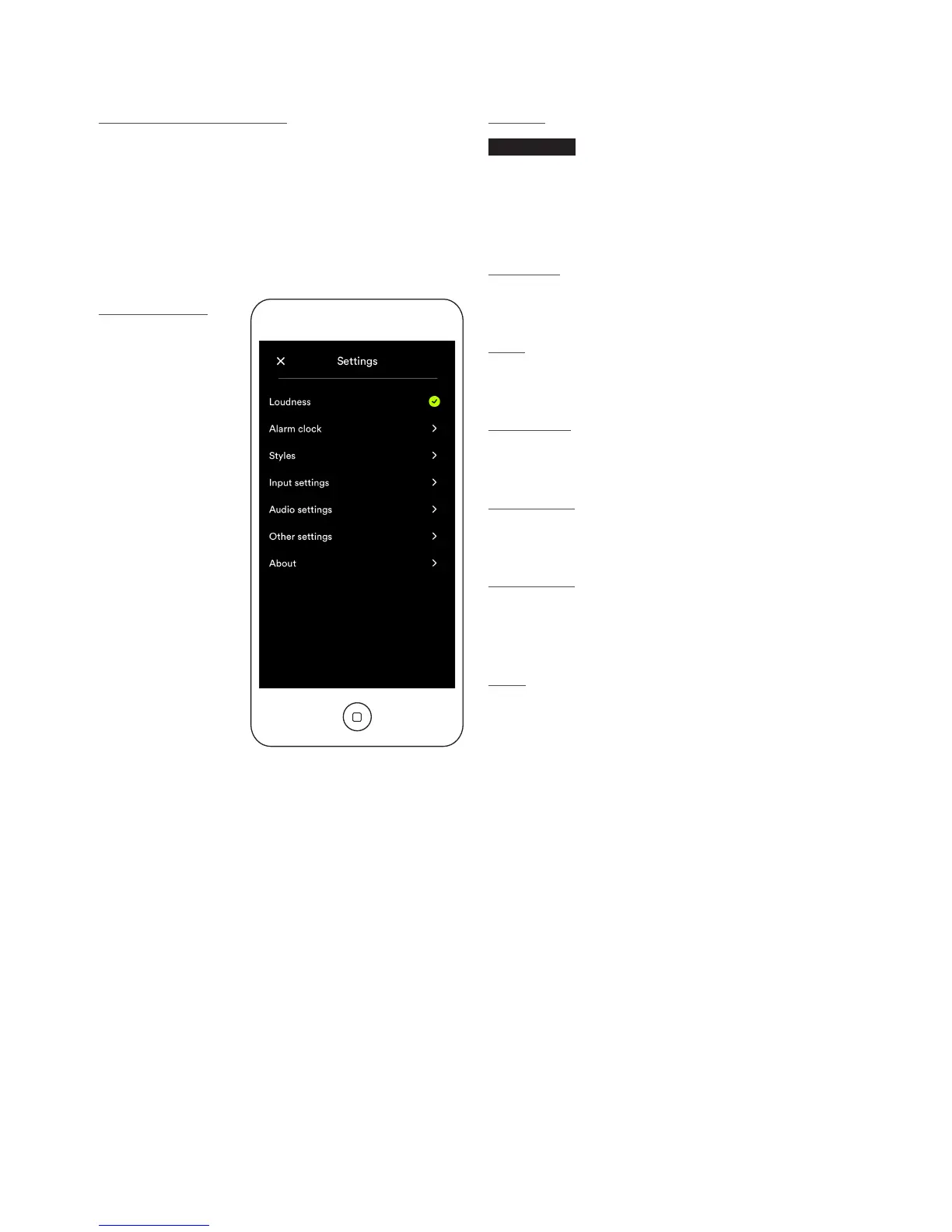 diagram below illustrates the Naim app Settings page.