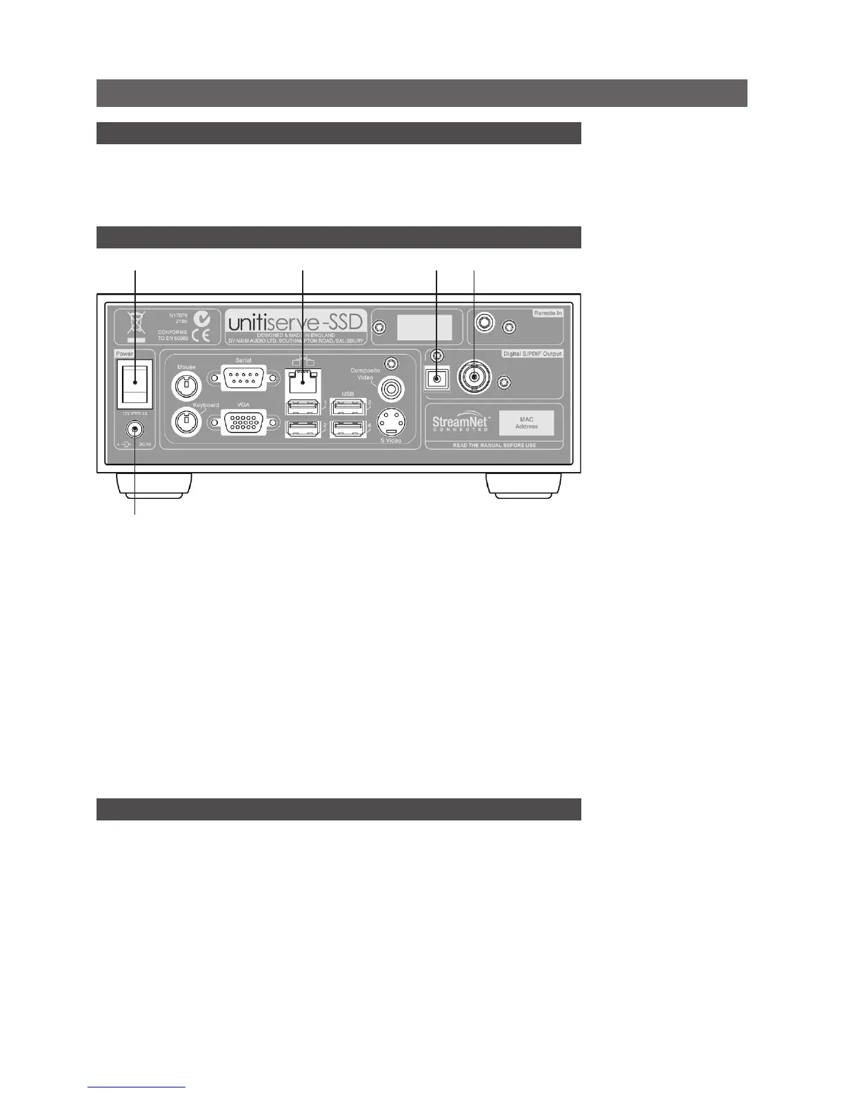 • Individuate sul pannello posteriore di UnitiServe-SSD le prese dell’uscita digitale, della rete e