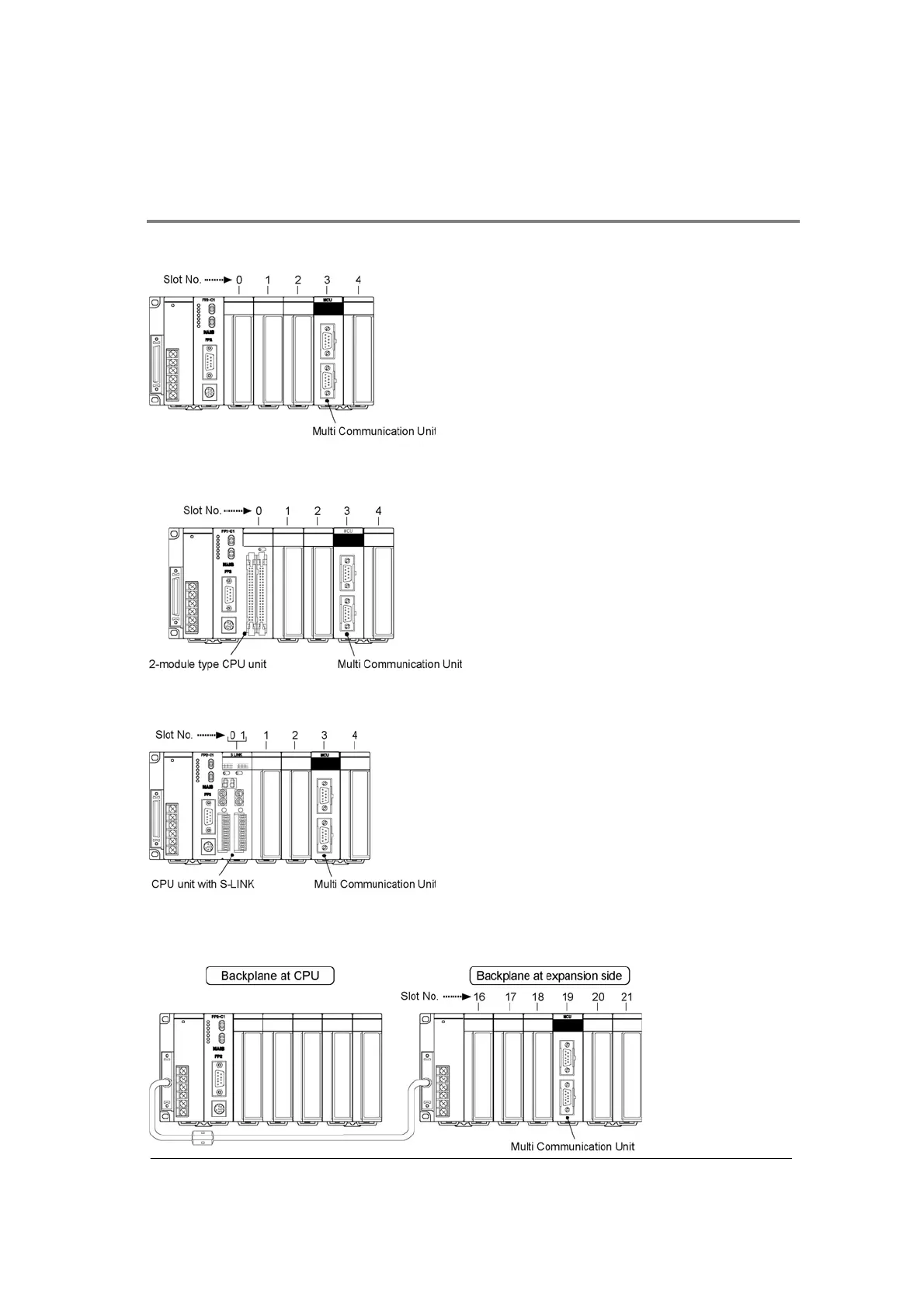 Slots are numbered in sequential order, with the slot to the right of the CPU unit being No. 0.
