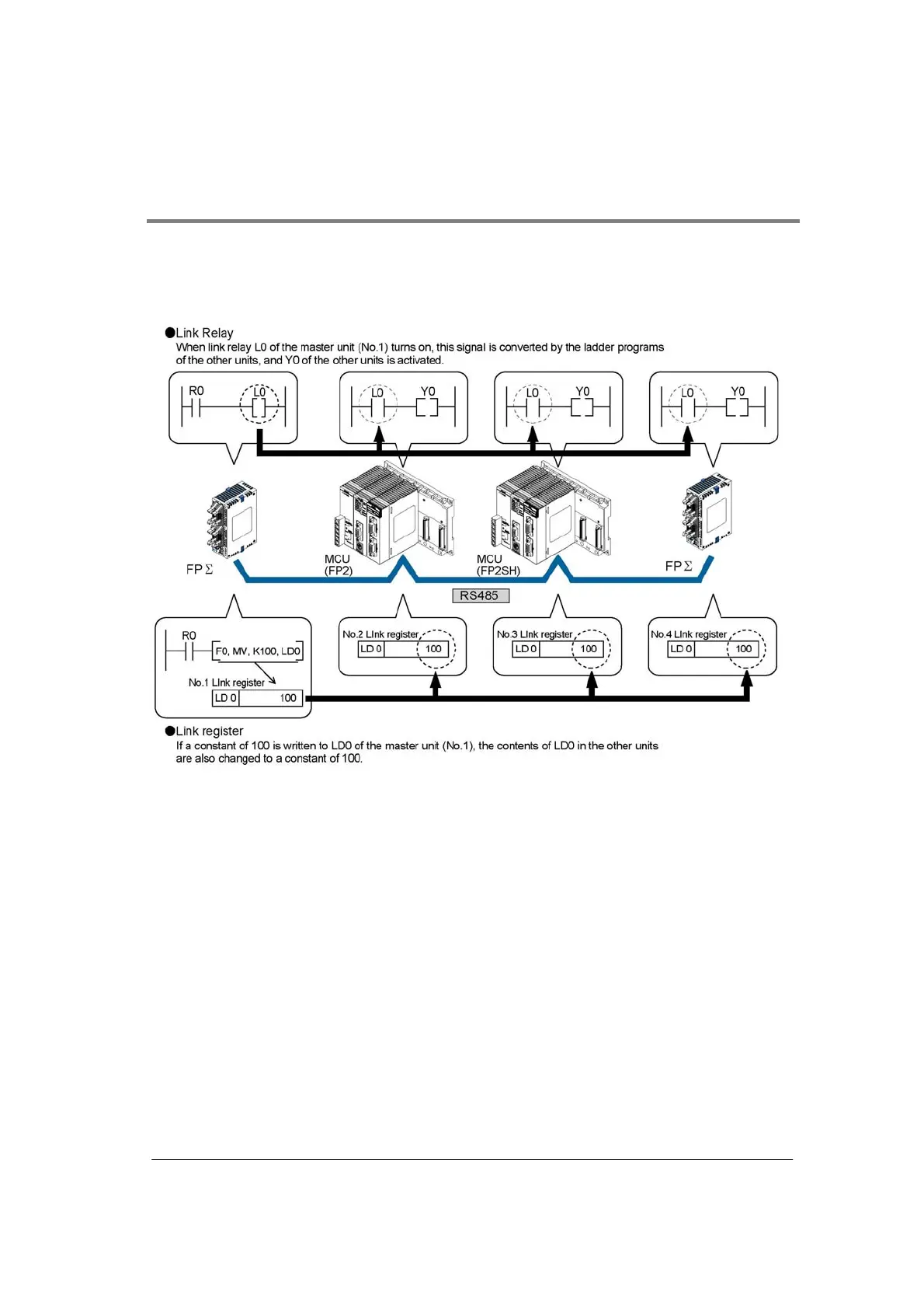 Likewise, if the contents of a link register in one PLC are changed, the values of the same link register
