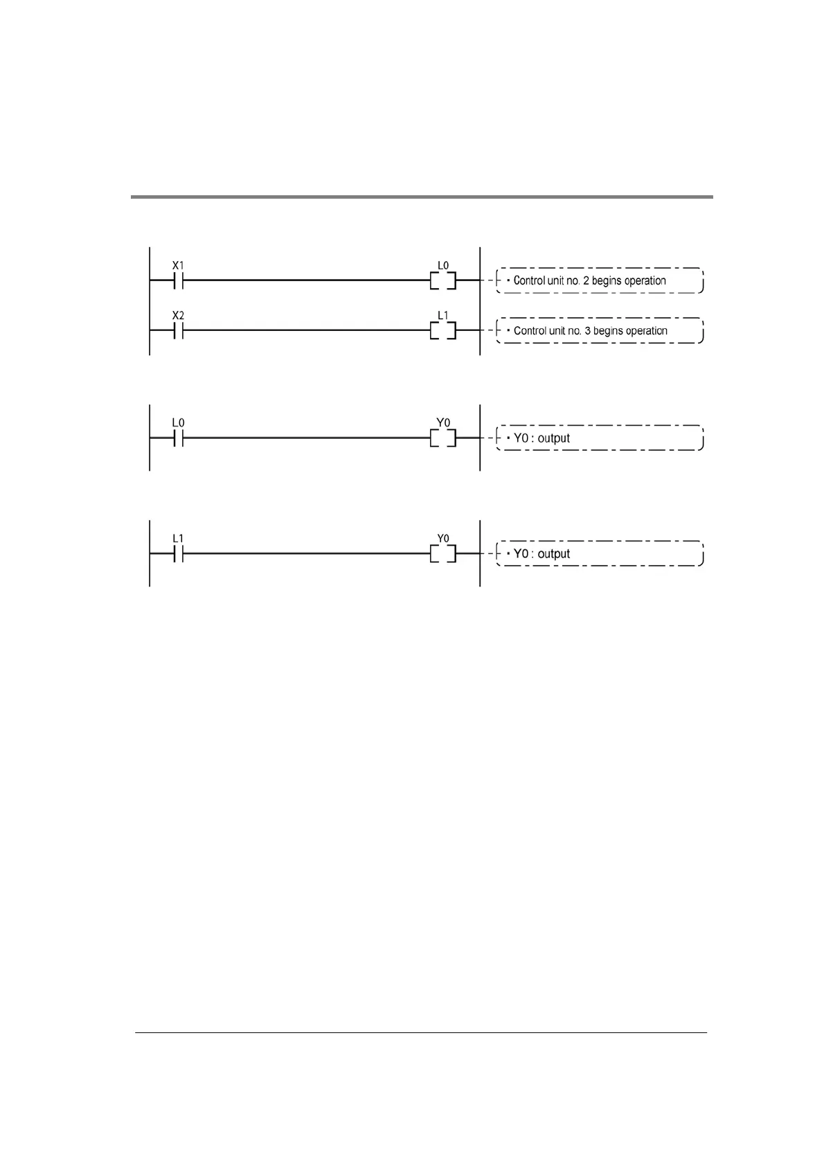 When X1 is input, L0 of the link relay goes on, and when X2 is input, L1 of the link relay goes on.