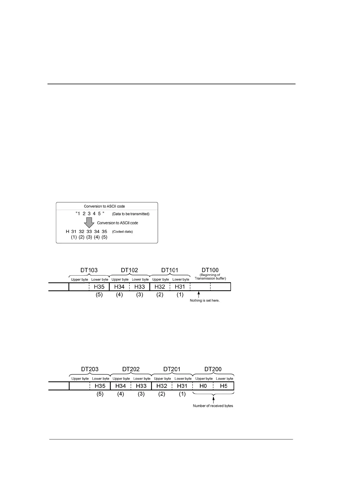 • If DT200 is being used as the beginning of the receive buffer, received data will be stored in the