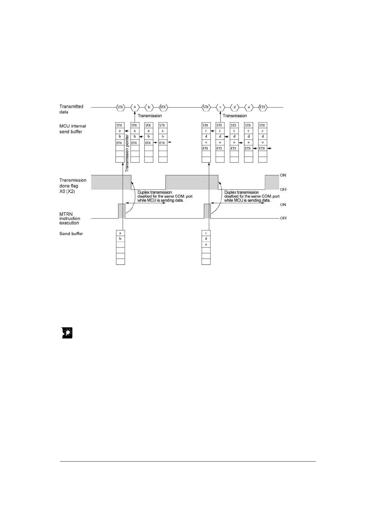 Duplex transmission is disabled for the same COM. port while MCU is sending data. The “transmission