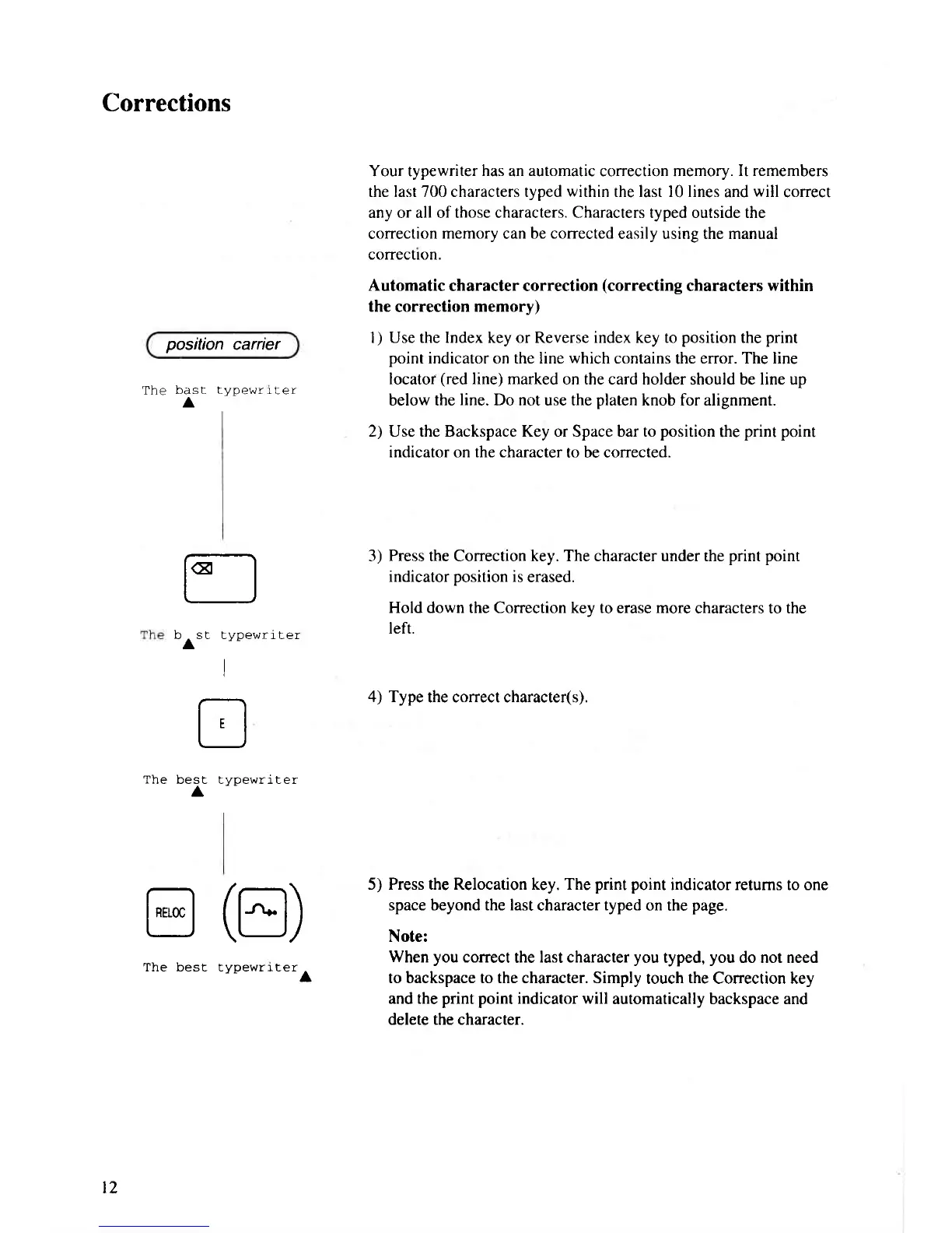 the Correction key. The character under the