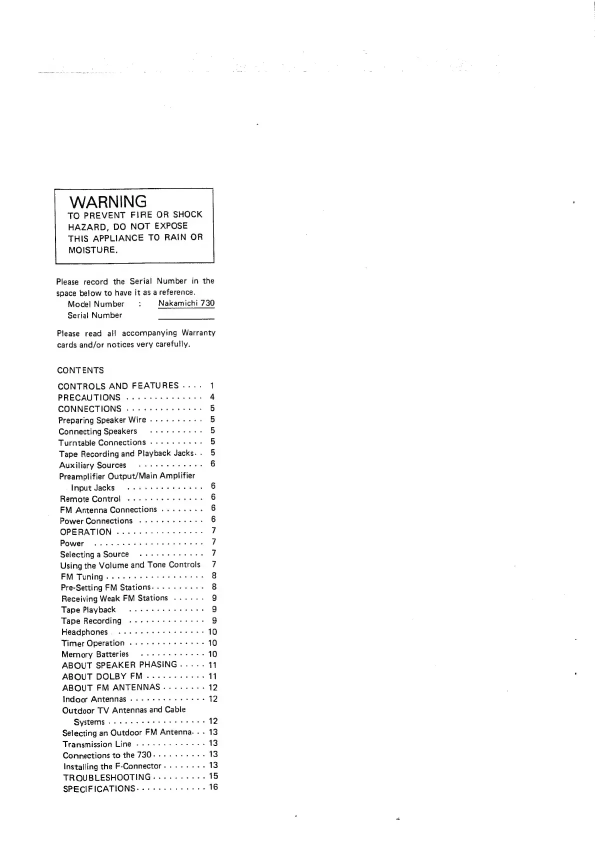 Nakamichi 730 - Table of Contents