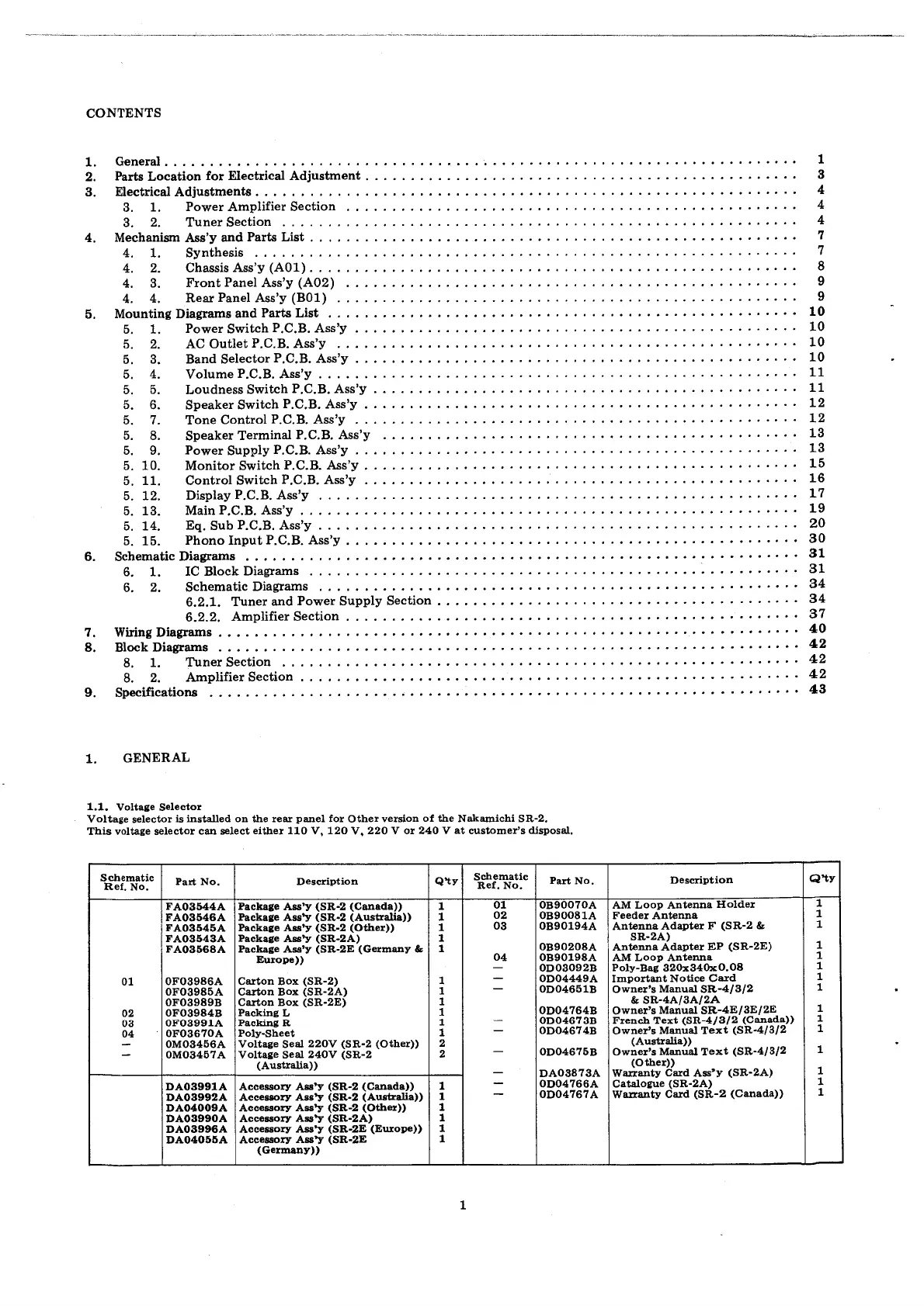 Nakamichi SR-2A - Contents; General; Voltage Selector
