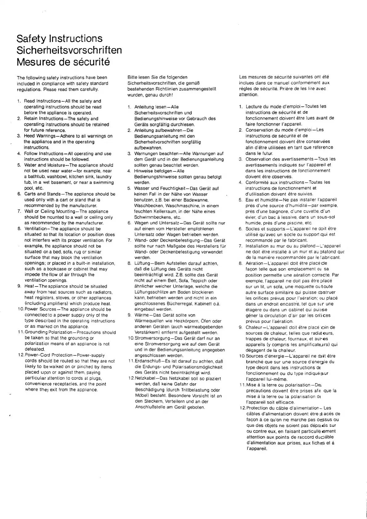 Nakamichi SR-4E - Safety Instructions; General Safety Precautions