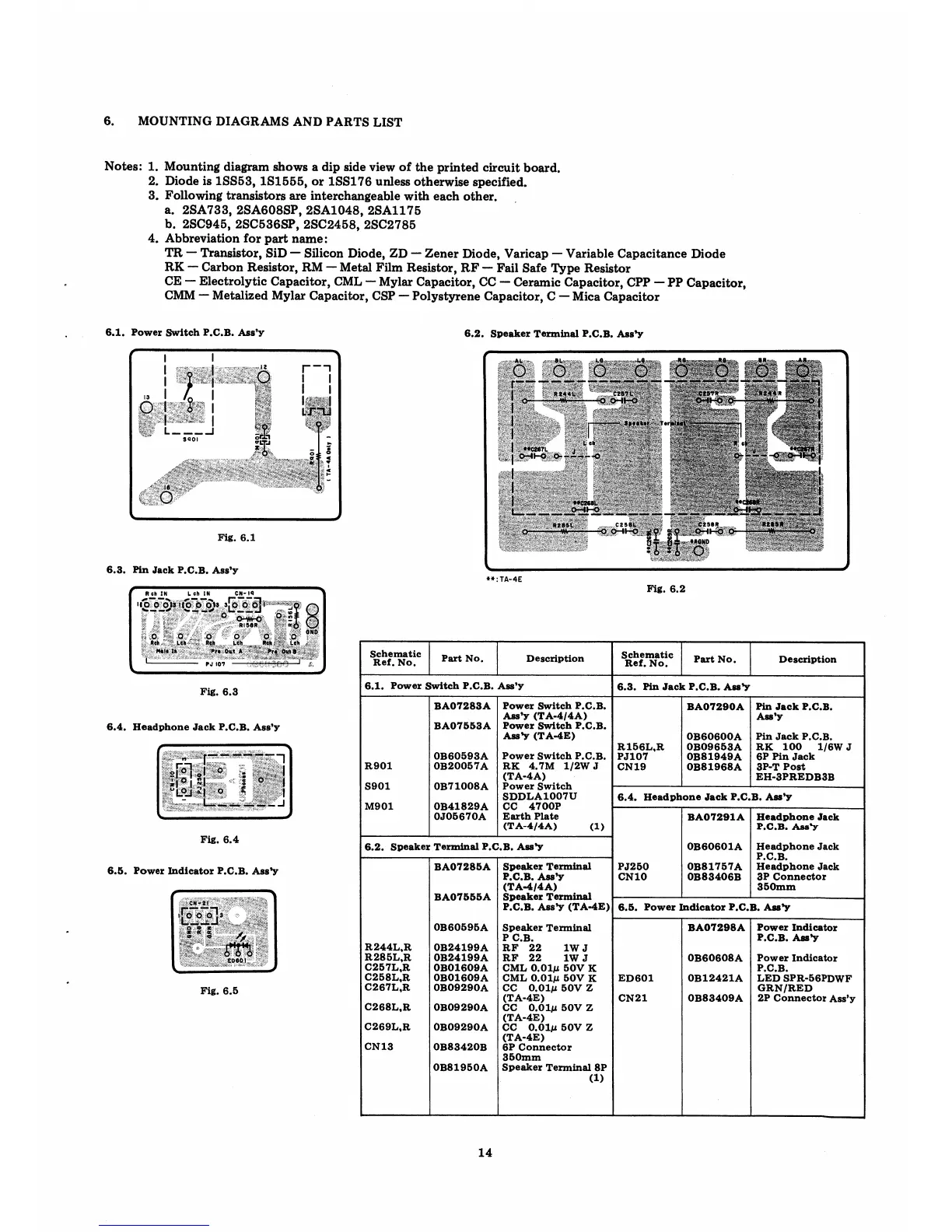 Nakamichi ta-4e - 6.3. Pin Jack P.C.B. Assy; 6.5. Power Indicator P.C.B. Assy