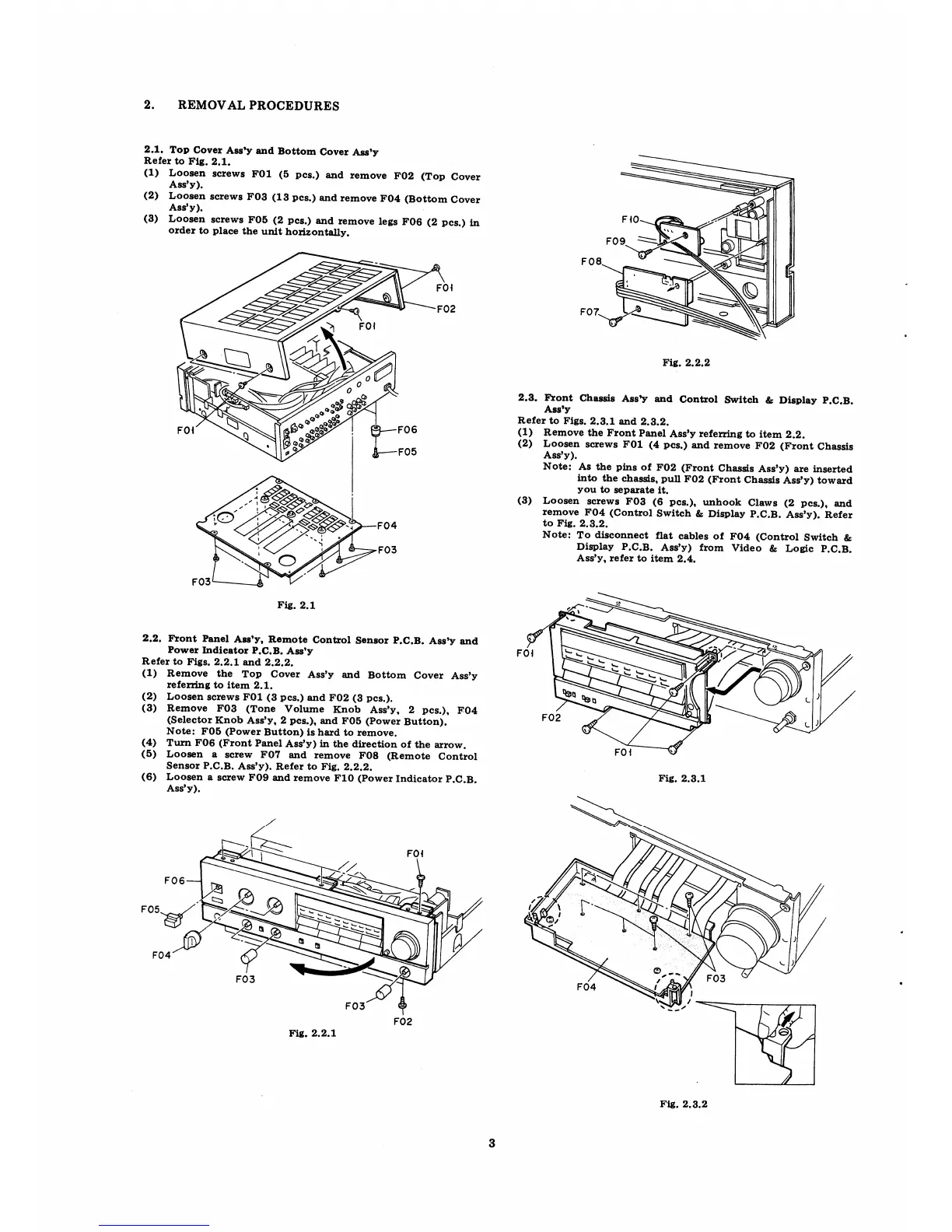Nakamichi ta-4e - 2. REMOVAL PROCEDURES; 2.1. Top Cover Assy and Bottom Cover Assy; 2.3. Front Chassis Assy and Control Switch & Display P.C.B. Assy