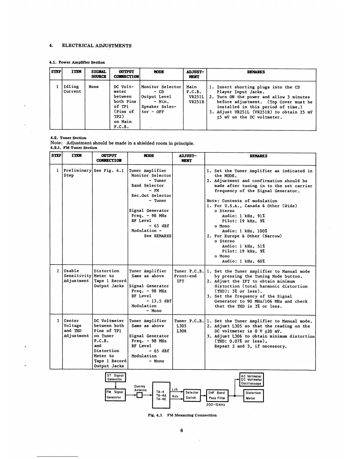 Nakamichi ta-4e - 4. ELECTRICAL ADJUSTMENTS; 4.1. Power Amplifier Section; 4.2. Tuner Section
